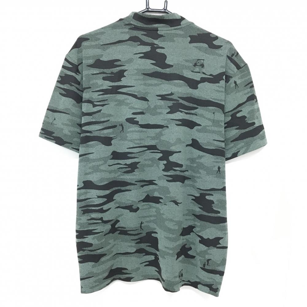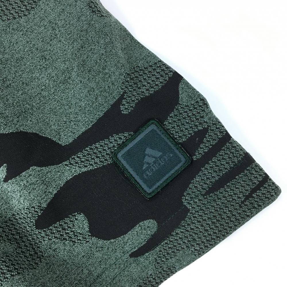 【超美品】アディダス 半袖ハイネックシャツ カーキ×黒 カモフラ 迷彩 メンズ 2XL ゴルフウェア adidas