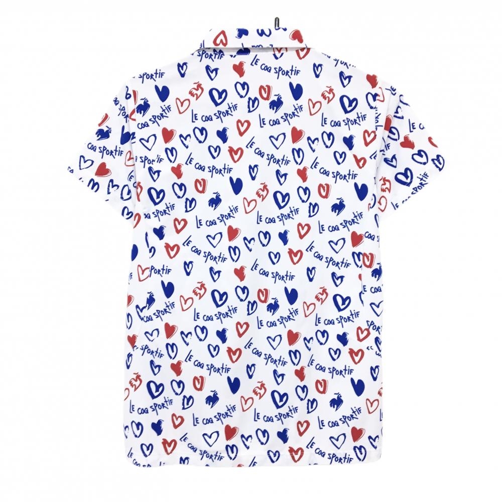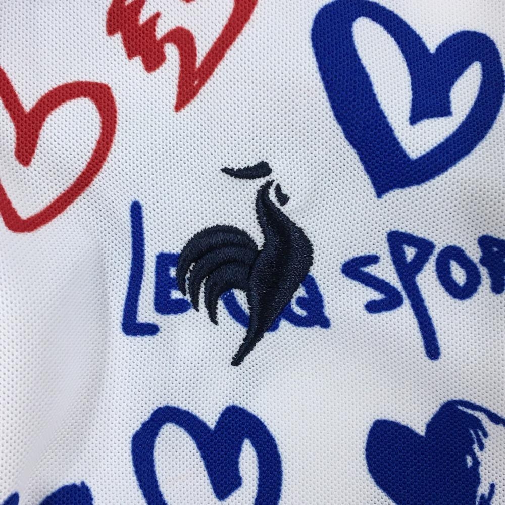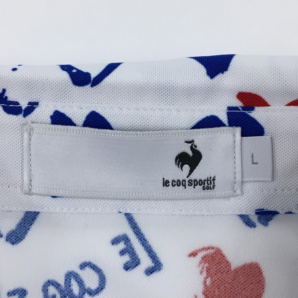 【超美品】ルコックゴルフ 半袖ポロシャツ 白×ブルー×レッド 総柄 レディース L ゴルフウェア 2024年モデル le coq sportif