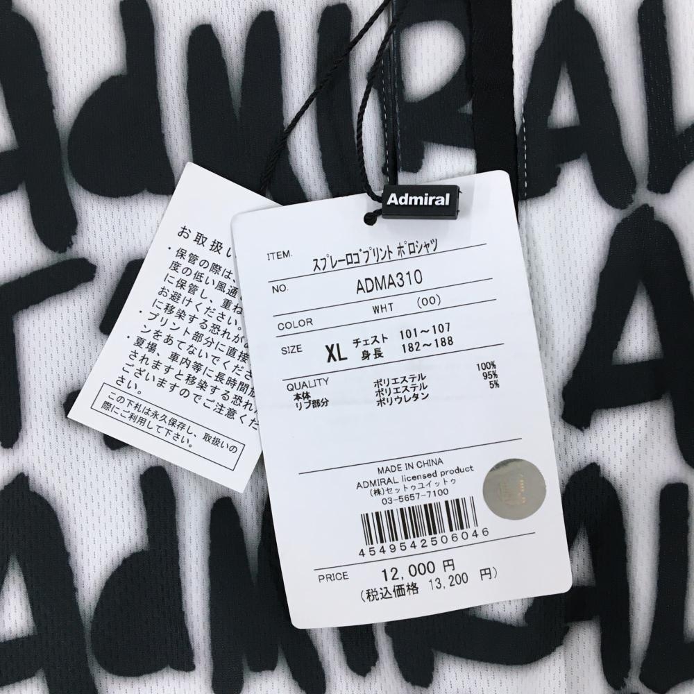 【新品】アドミラル 半袖ポロシャツ 白×黒 ロゴ総柄 メンズ XL ゴルフウェア Admiral