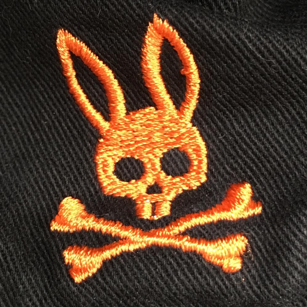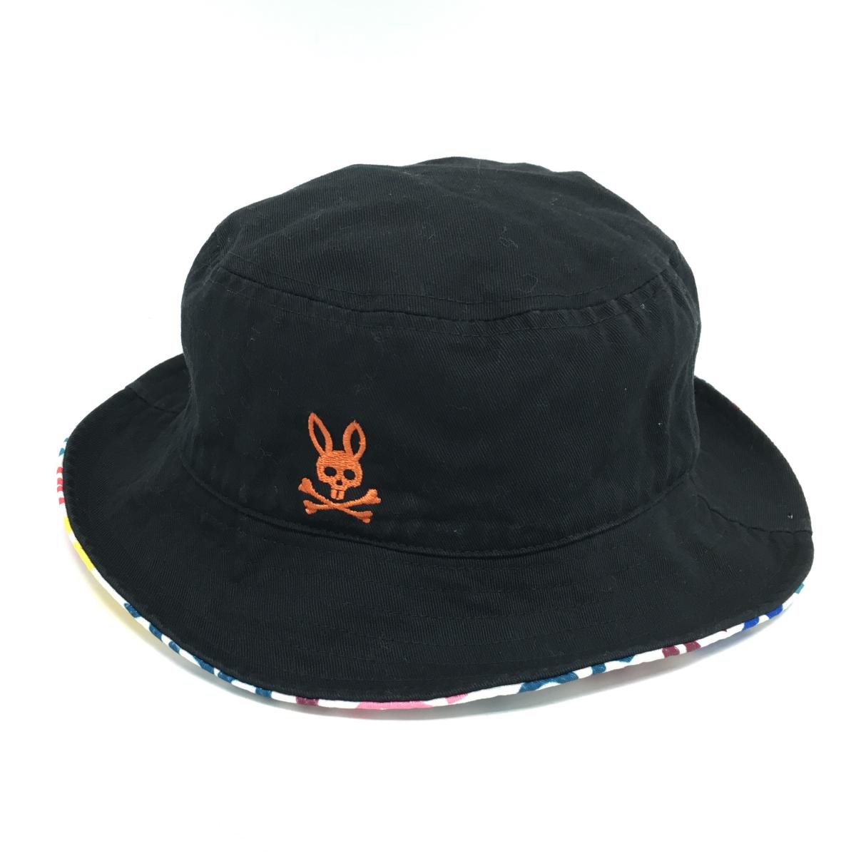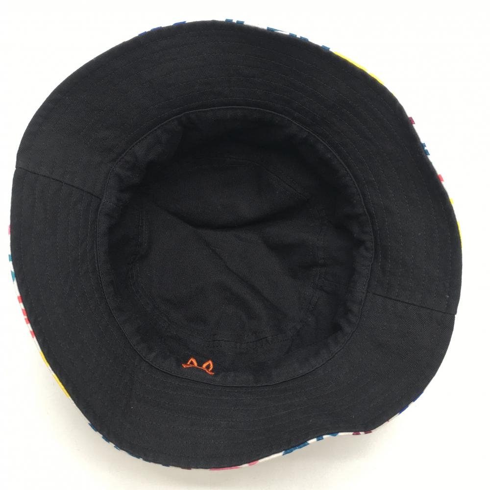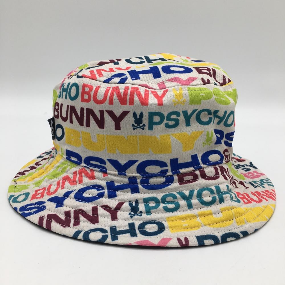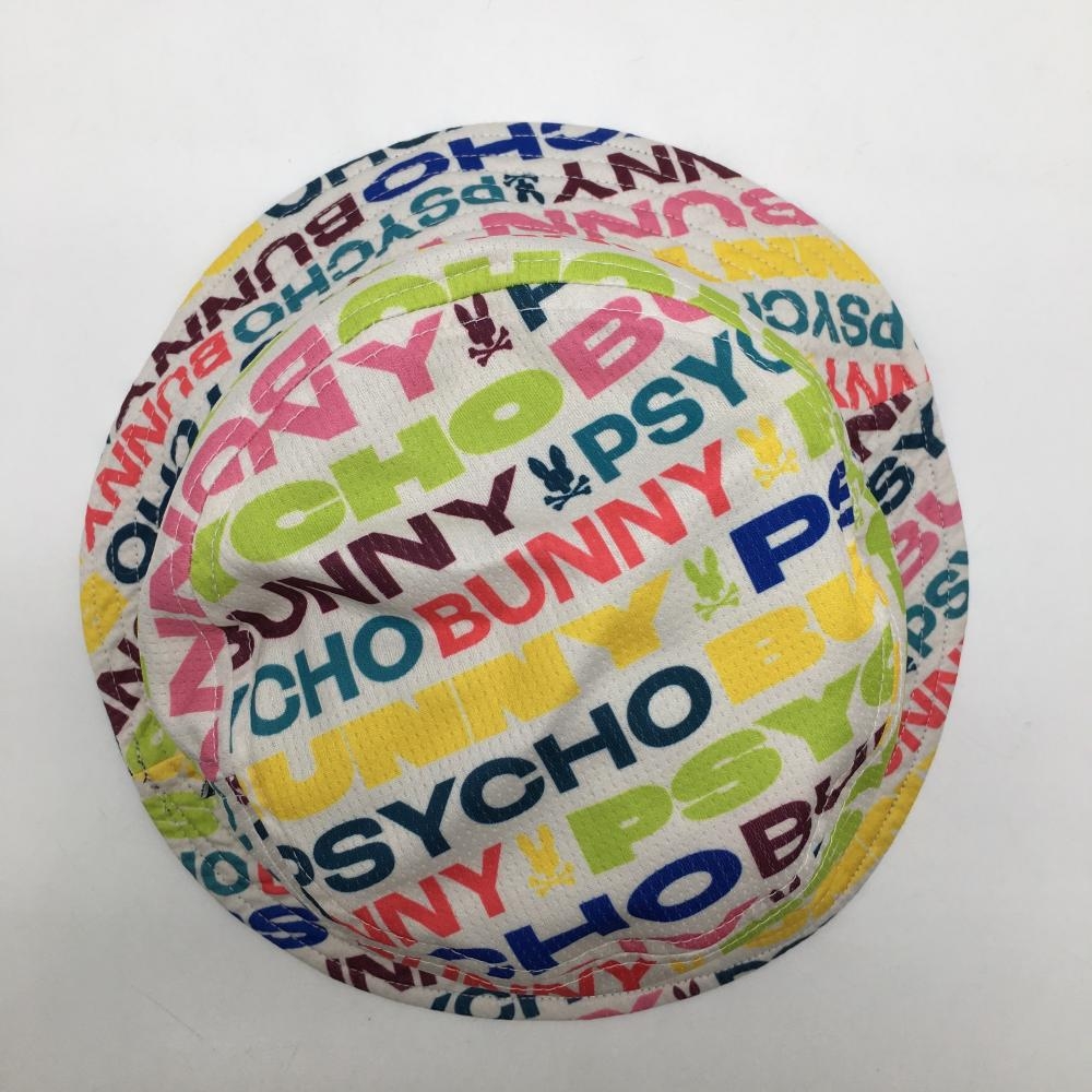 【美品】サイコバニー リバーシブルハット 白×マルチカラー ロゴ総柄 裏黒 ゴルフウェア Psycho Bunny