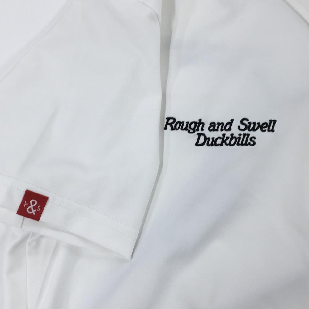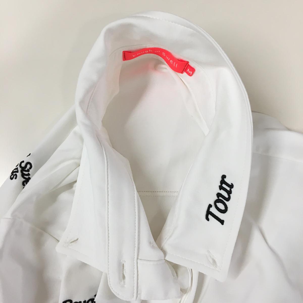 【美品】ラフアンドスウェル 半袖ポロシャツ 白 ロゴ刺しゅう黒 ボタンダウン レディース M ゴルフウェア rough&swell