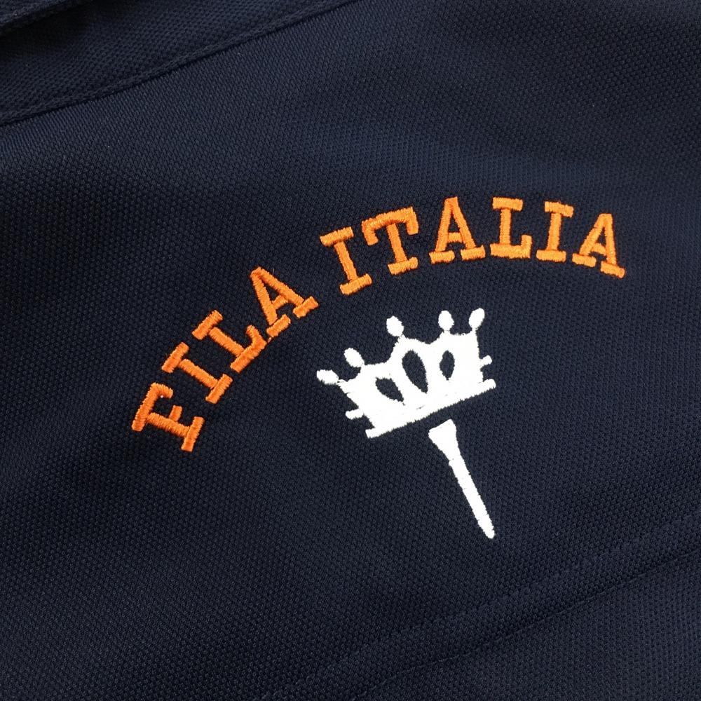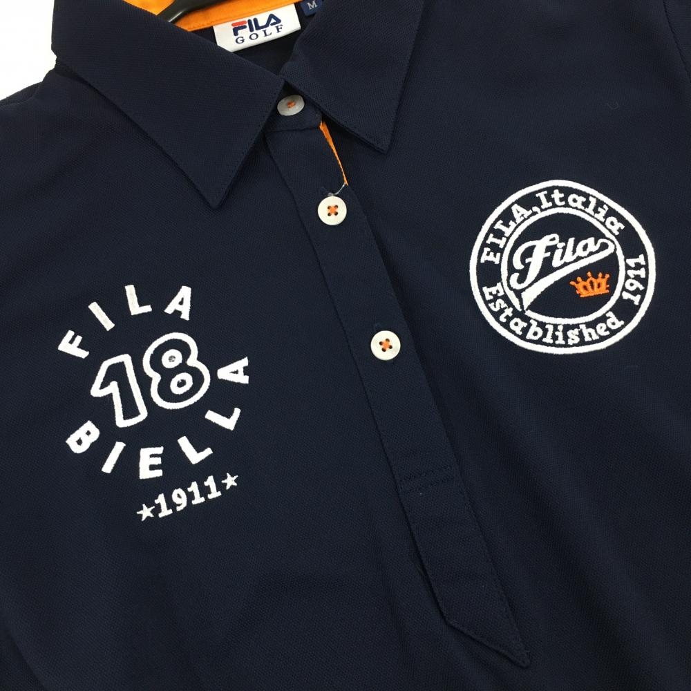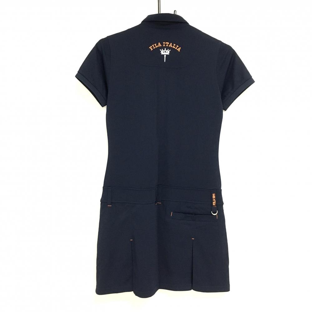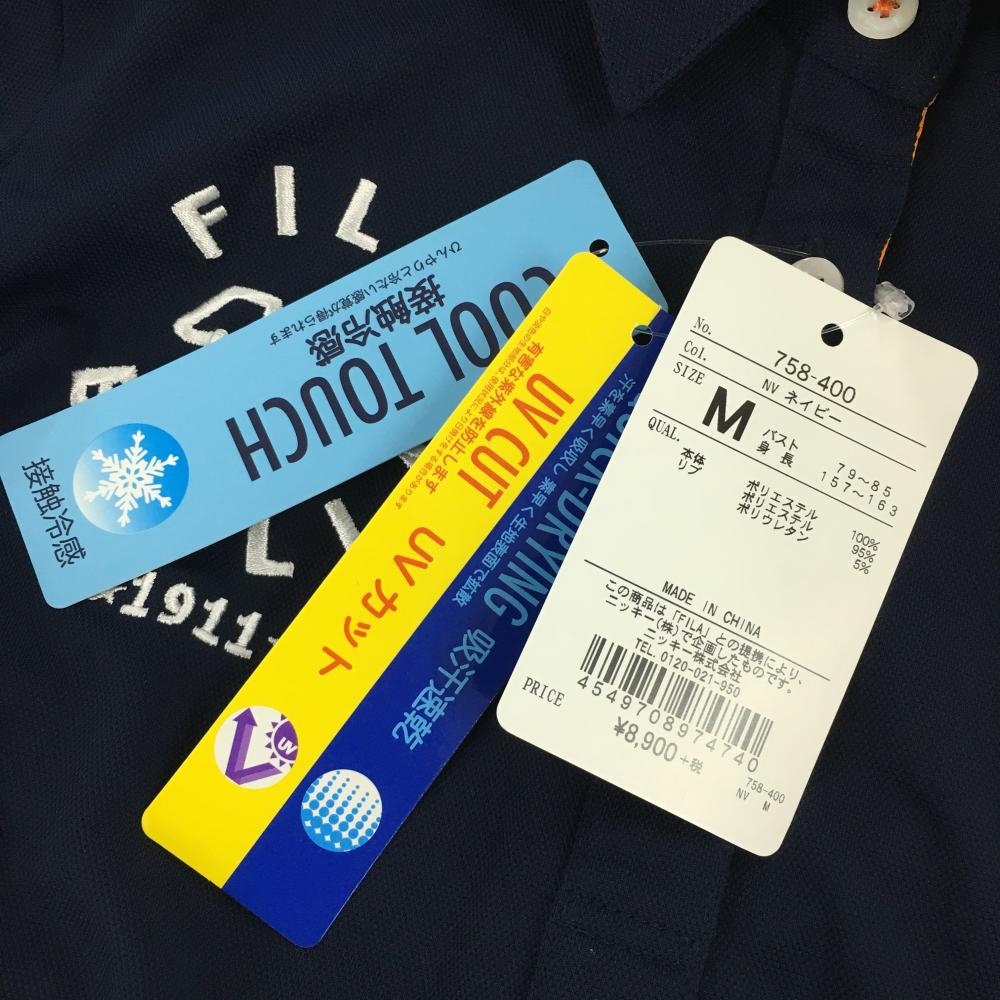 【新品】フィラゴルフ 半袖ポロワンピース ネイビー×オレンジ ロゴ刺しゅう UVカット 接触冷感 レディース M ゴルフウェア FILA GOLF