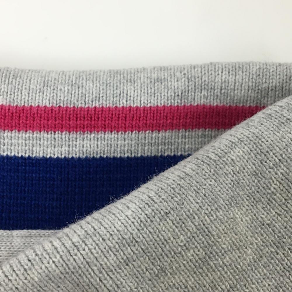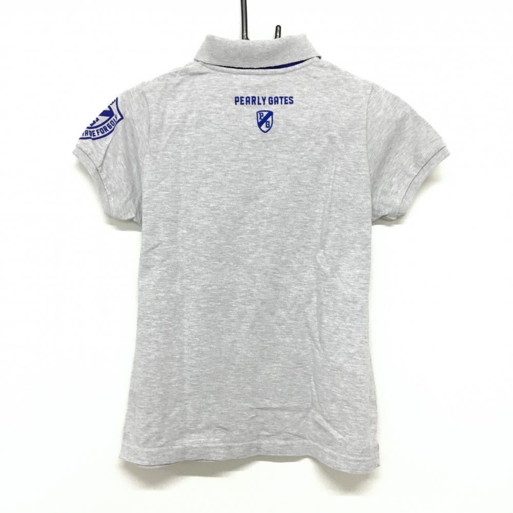 【美品】パーリーゲイツ 半袖ポロシャツ グレー×ブルー 袖ロゴプリント ニコちゃん スマイル レディース 0(S) ゴルフウェア PEARLY GATES
