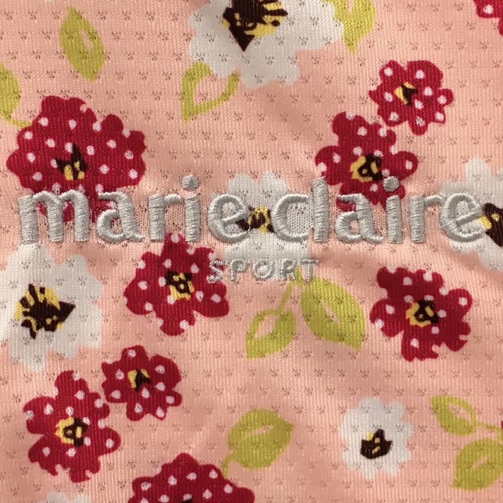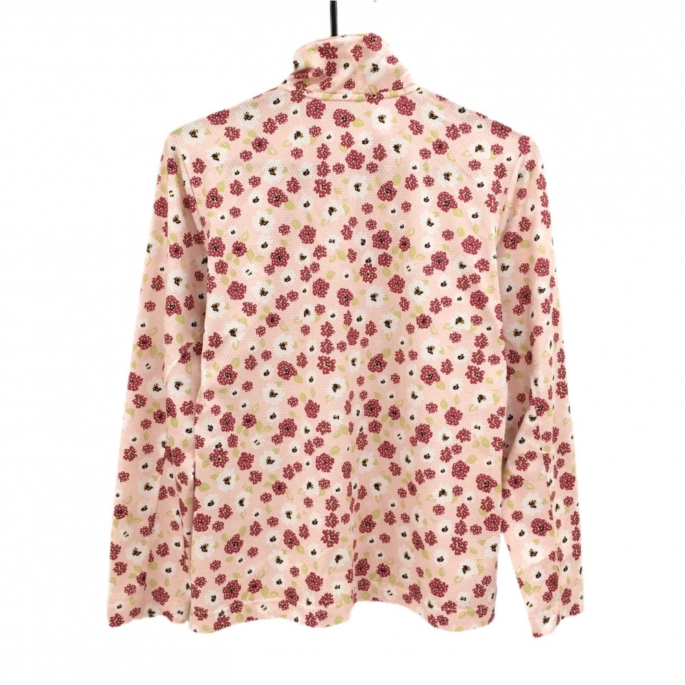 【超美品】マリクレールスポール 長袖ハイネックシャツ ピンク×白 花柄 ハーフジップ レディース L ゴルフウェア marie claire