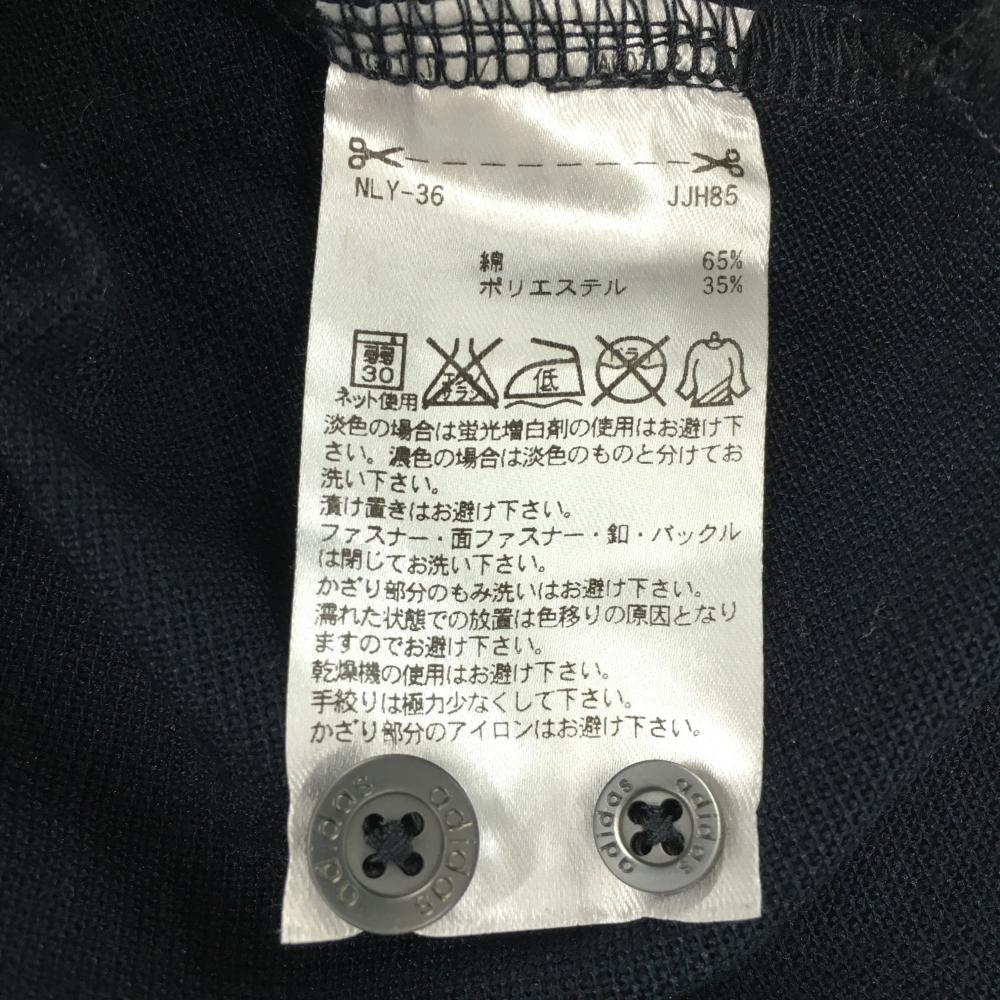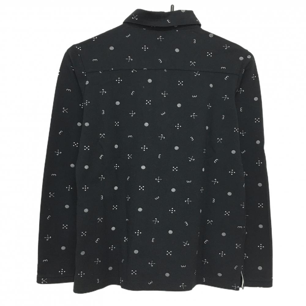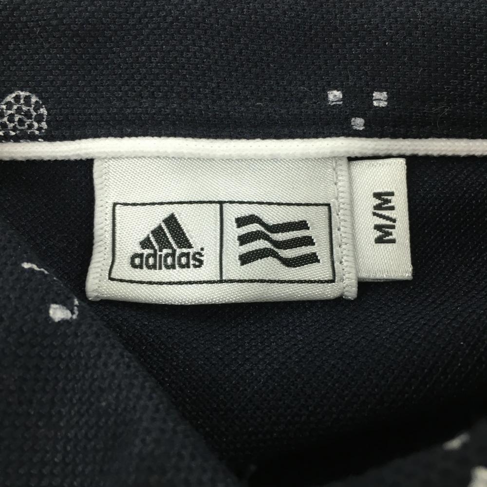 【美品】アディダス 長袖ポロシャツ ネイビー×白 総柄 ロゴ刺しゅう ボタンダウン レディース M/M ゴルフウェア adidas