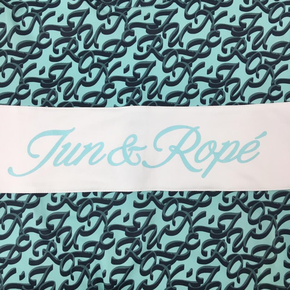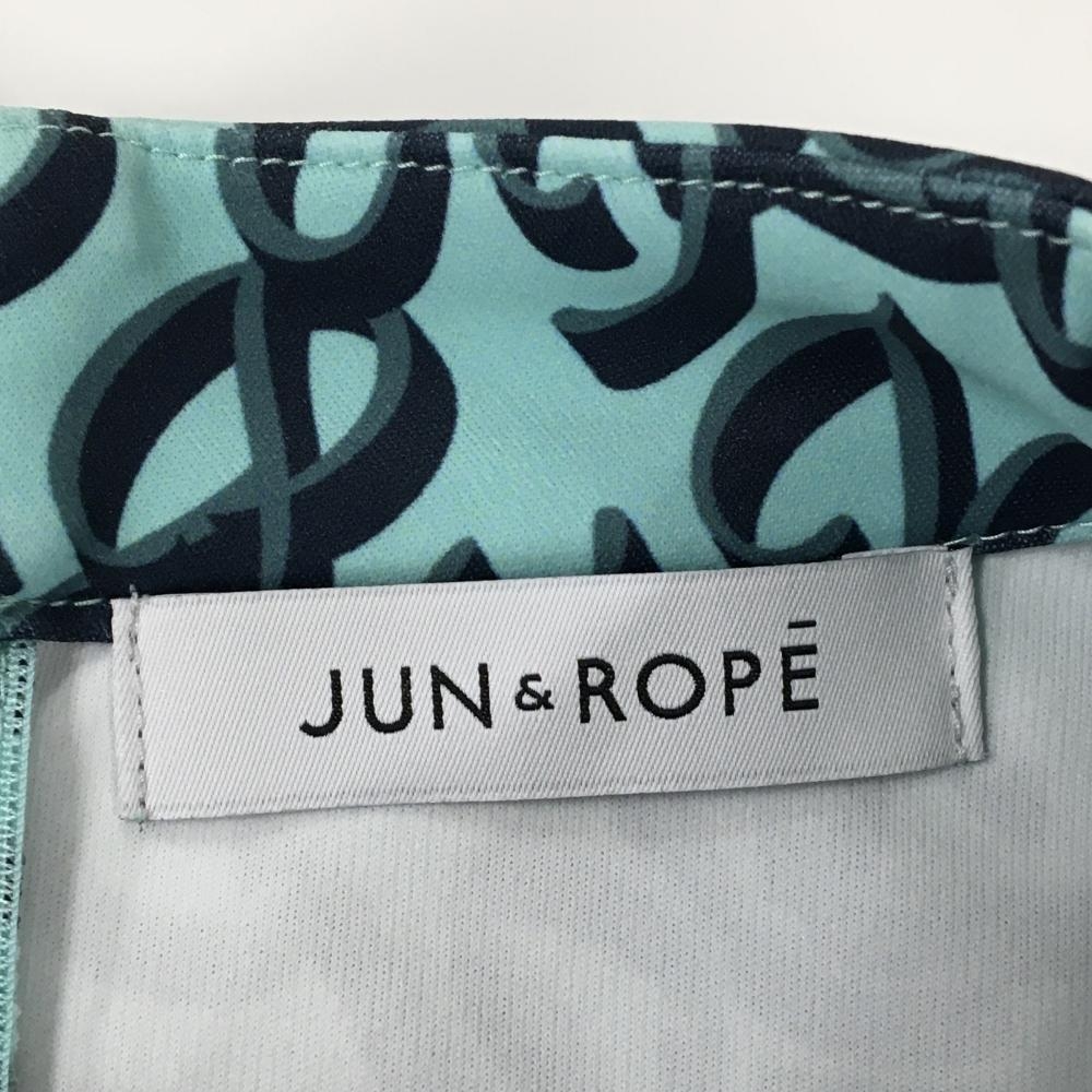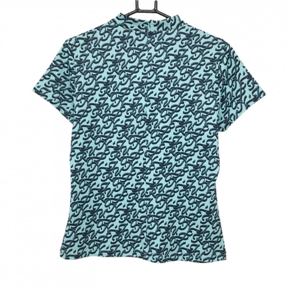 ジュンアンドロペ 半袖ハイネックシャツ ミントグリーン×ネイビー 英字総柄 レディース L ゴルフウェア JUN&ROPE