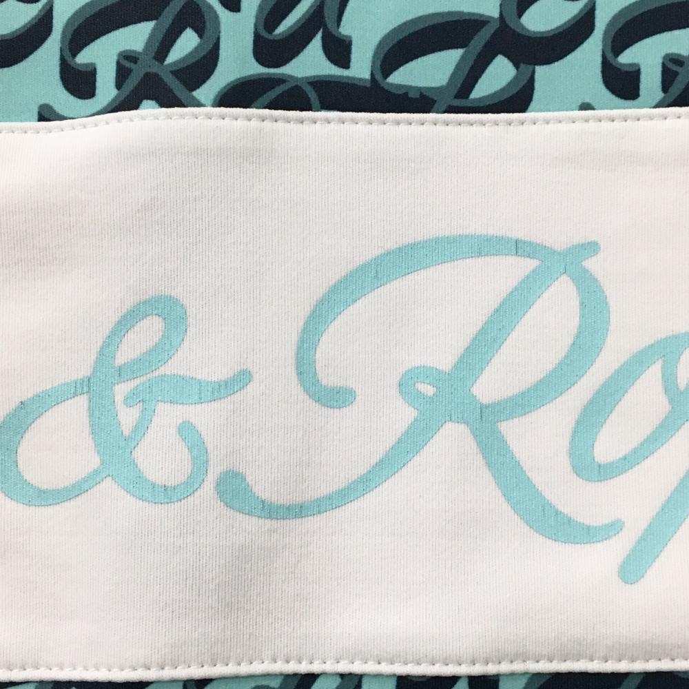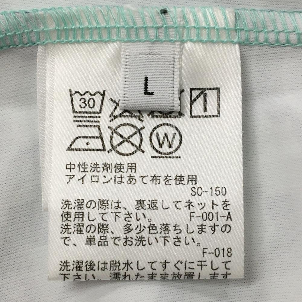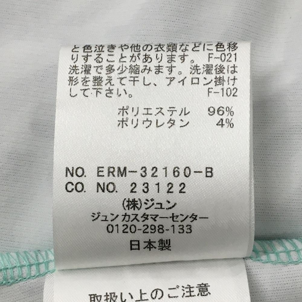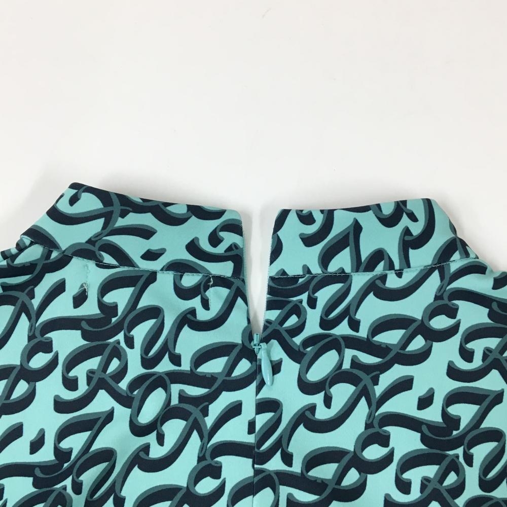 ジュンアンドロペ 半袖ハイネックシャツ ミントグリーン×ネイビー 英字総柄 レディース L ゴルフウェア JUN&ROPE
