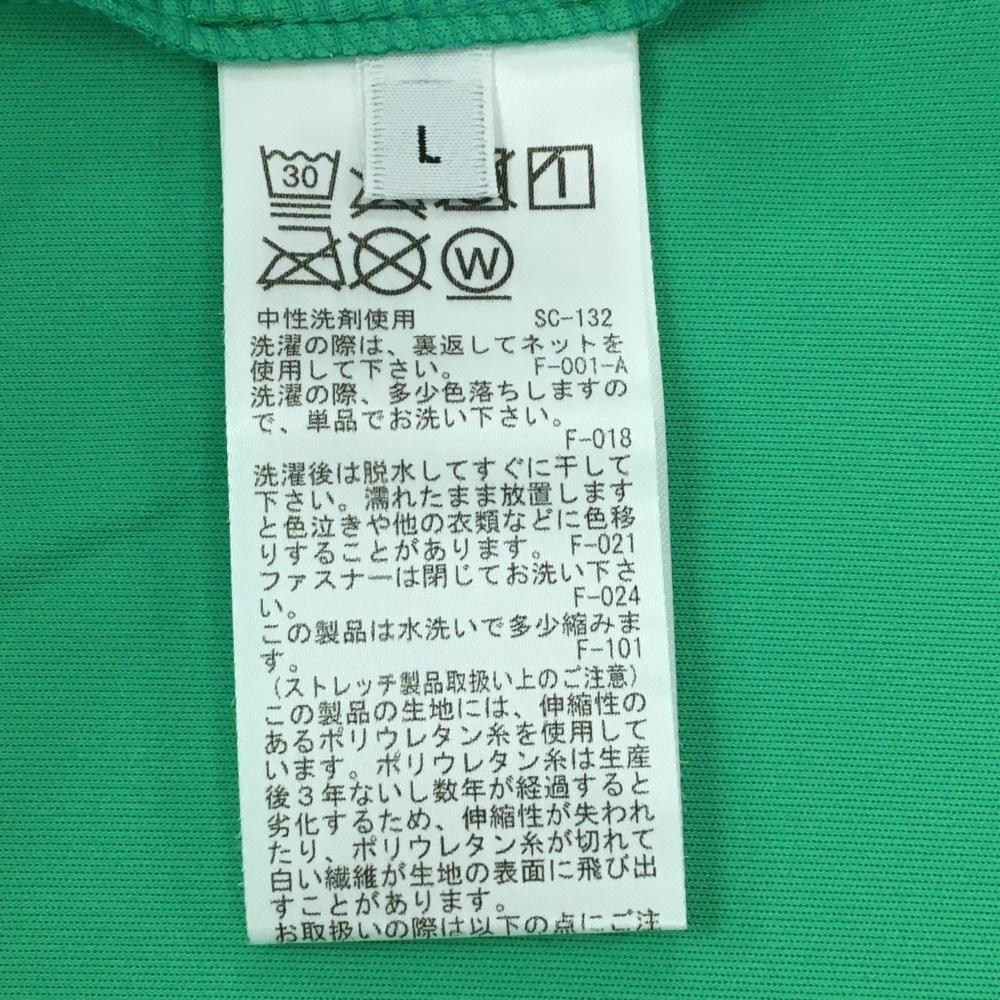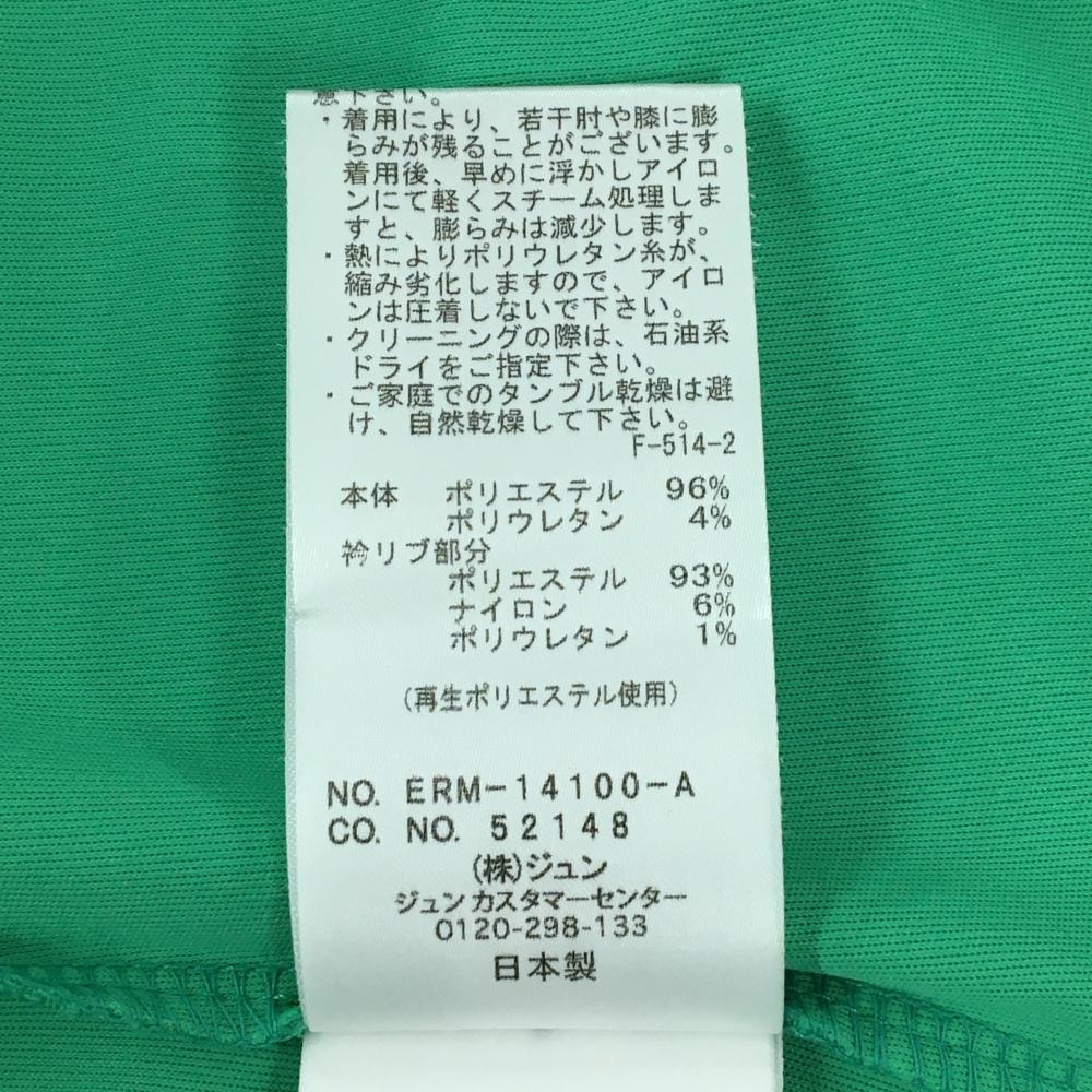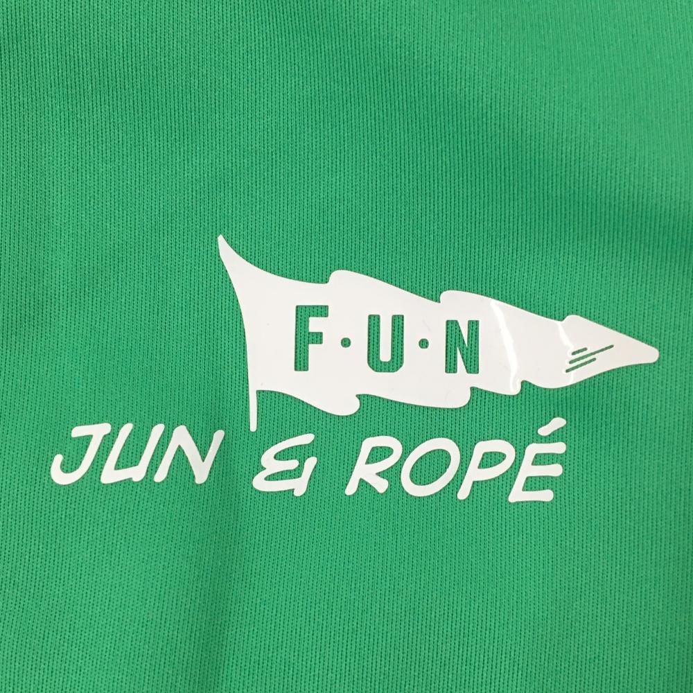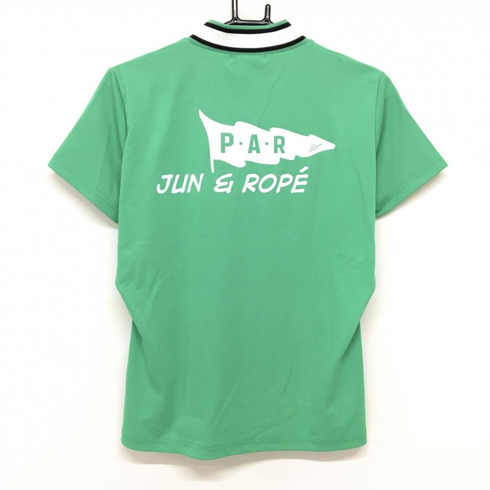 【超美品】ジュンアンドロペ 半袖ハイネックシャツ グリーン×白 ネックライン バックプリント レディース L ゴルフウェア JUN&ROPE