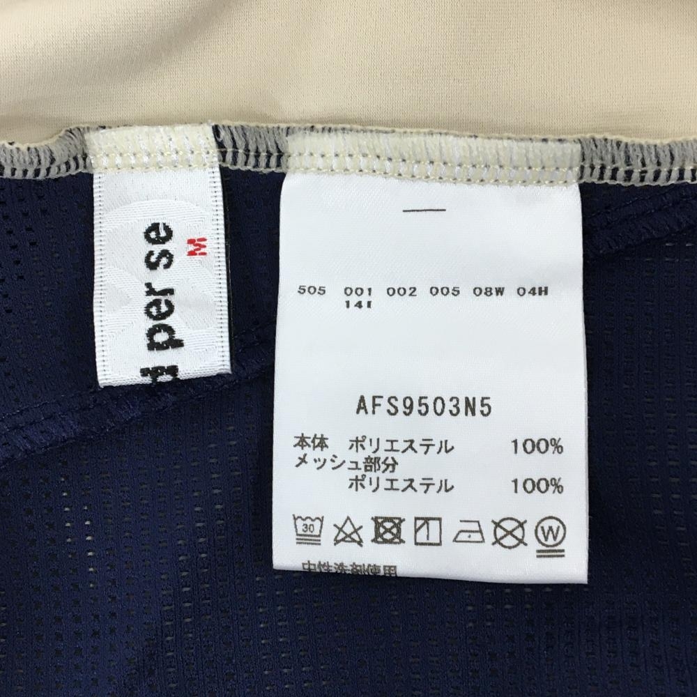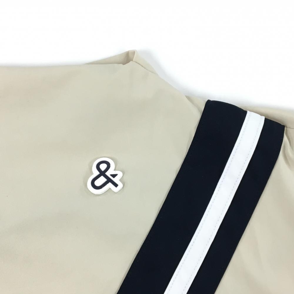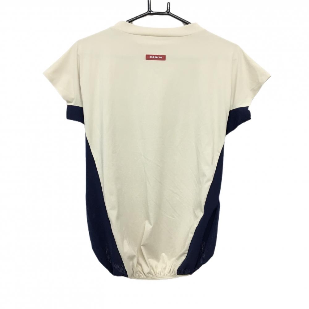 【超美品】アンパスィ 半袖ハイネックシャツ ベージュ×ネイビー レディース M ゴルフウェア and per se