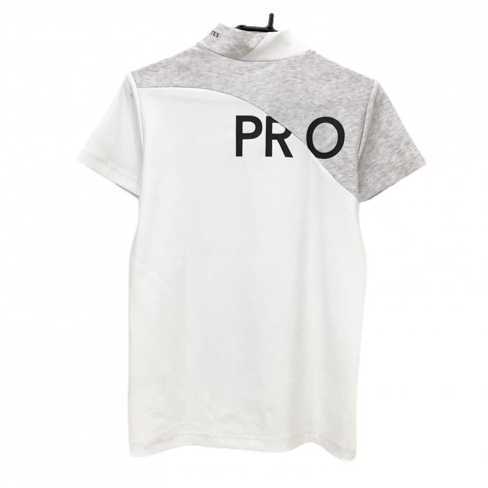 【超美品】パーリーゲイツ 半袖ハイネックシャツ 白×ライト杢グレー 切替 レディース 2(L) ゴルフウェア 2024年モデル PEARLY GATES
