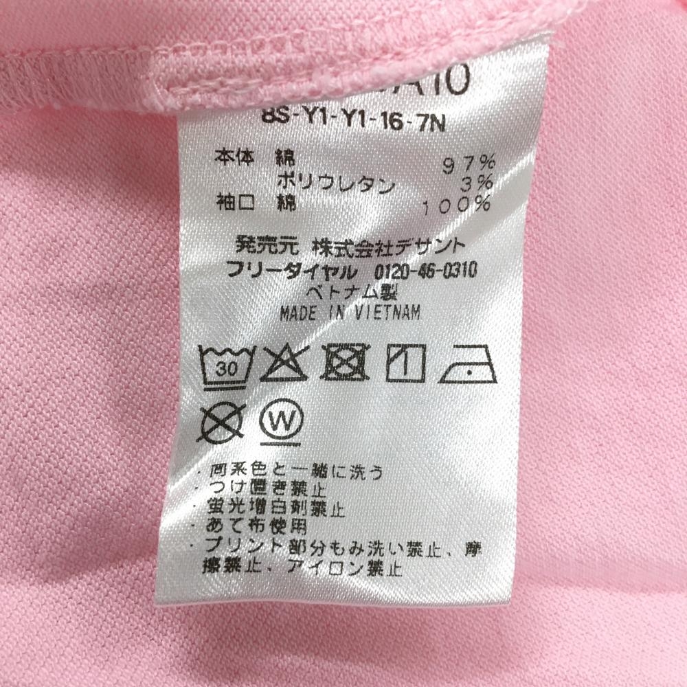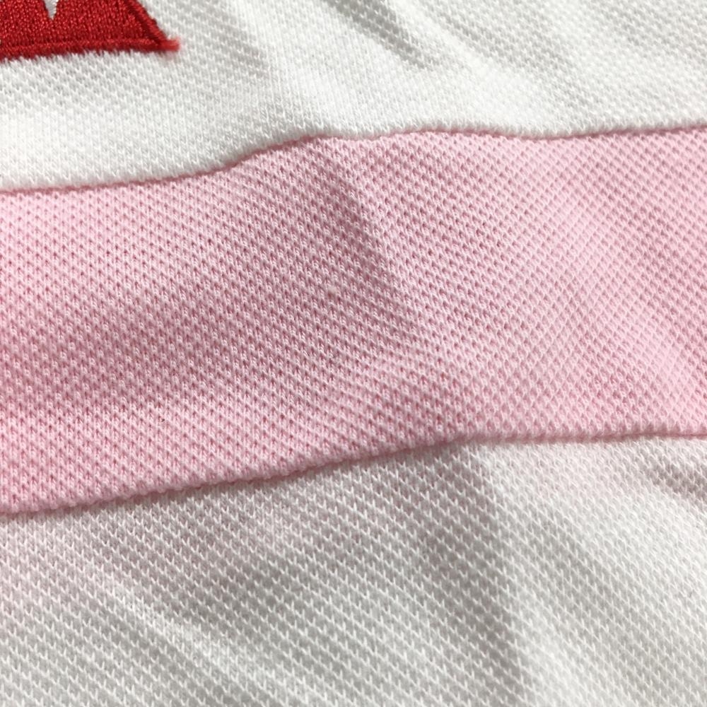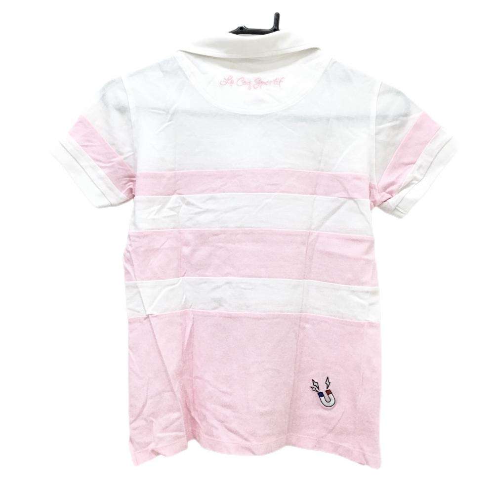 【美品】ルコックゴルフ 半袖ポロシャツ ピンク×白 一部ボーダー ロゴレッド 毛羽立ち小 レディース M ゴルフウェア le coq sportif