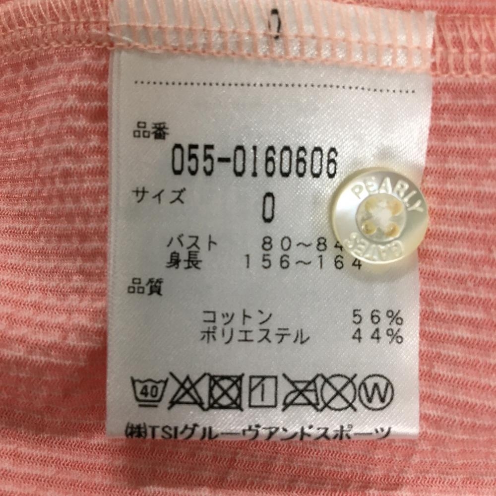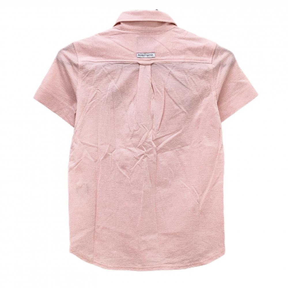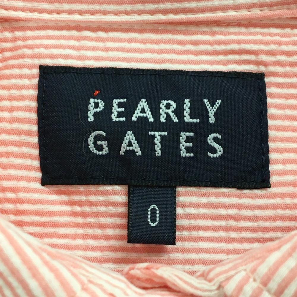 【超美品】パーリーゲイツ 半袖ポロシャツ ピンク×白 細目ストライプ 刺しゅうワッペン レディース 0(S) ゴルフウェア PEARLY GATES