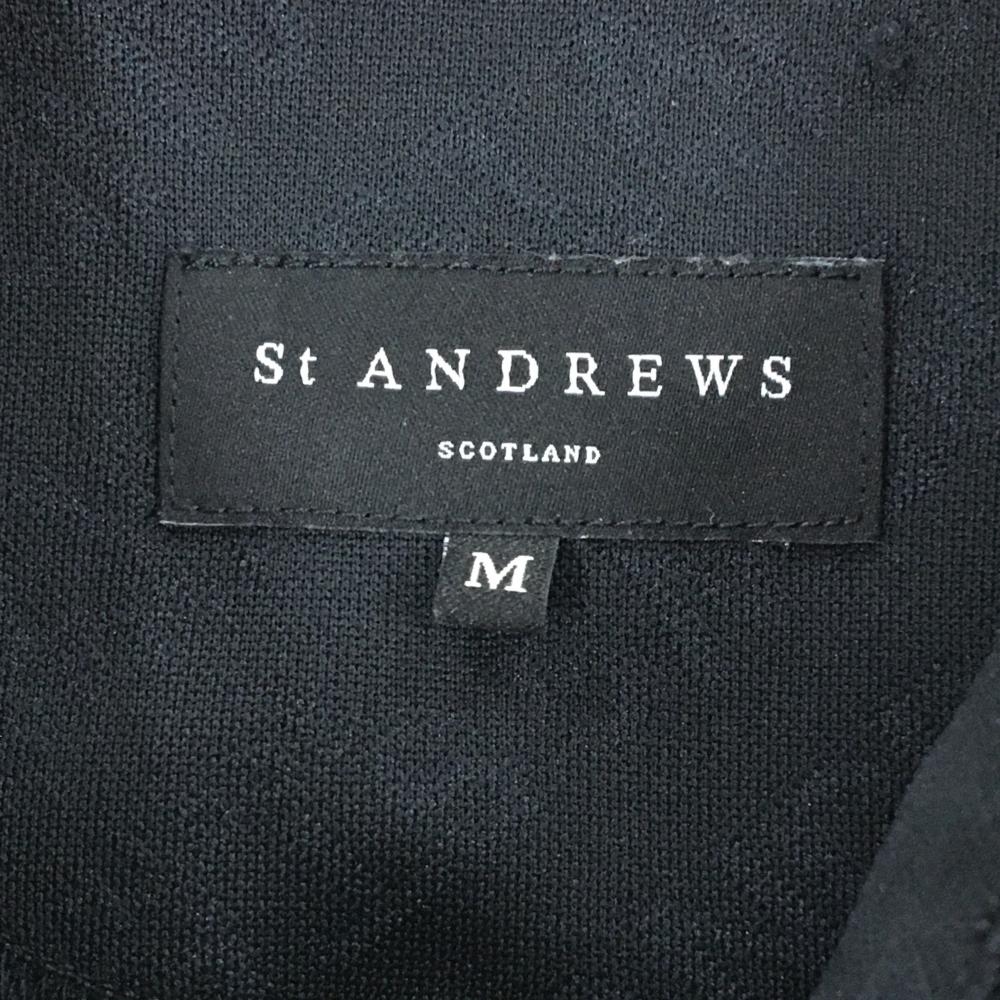 【超美品】セントアンドリュース 半袖ポロシャツ 黒×シルバー ロゴ地模様 襟・袖口ライン レディース M ゴルフウェア St ANDREWS