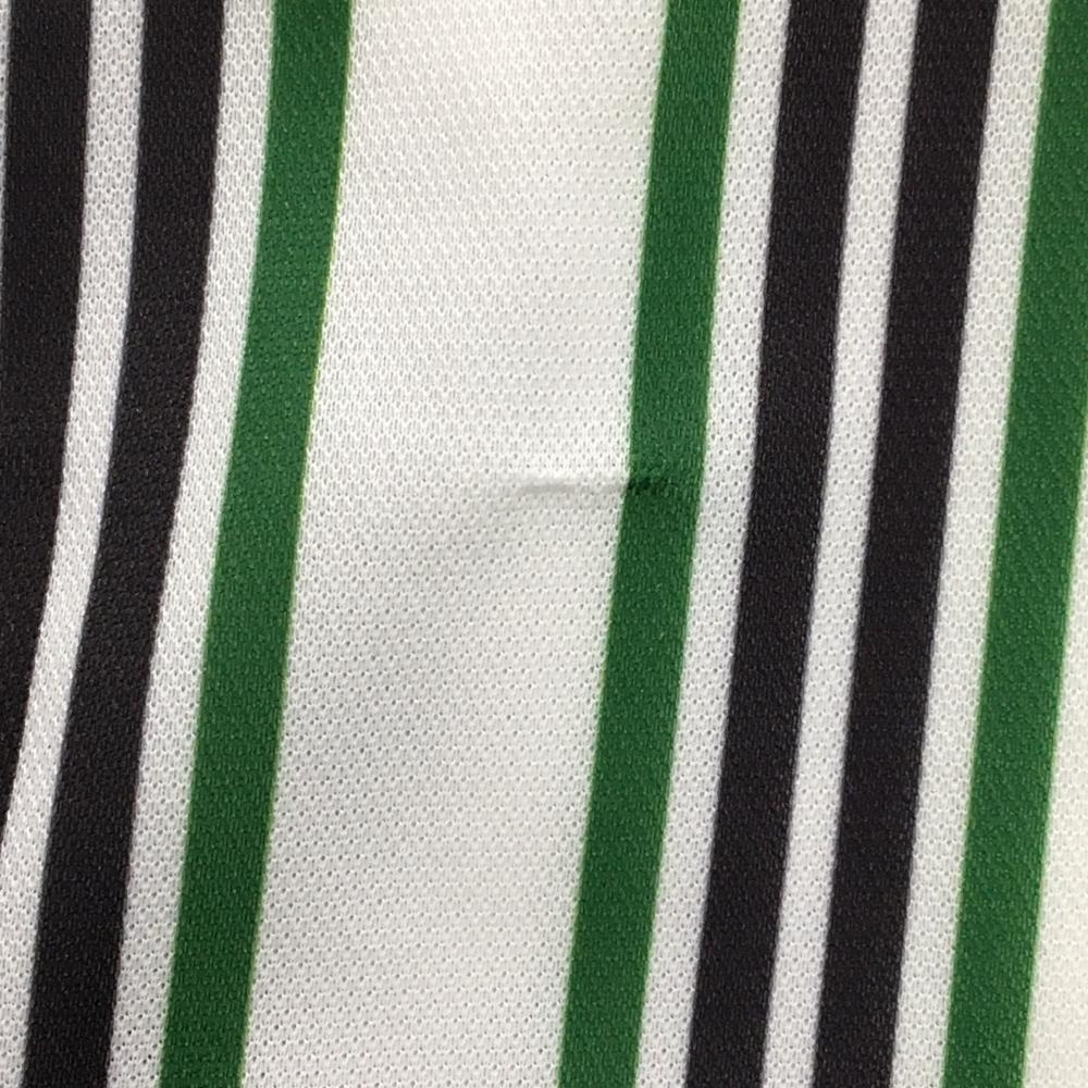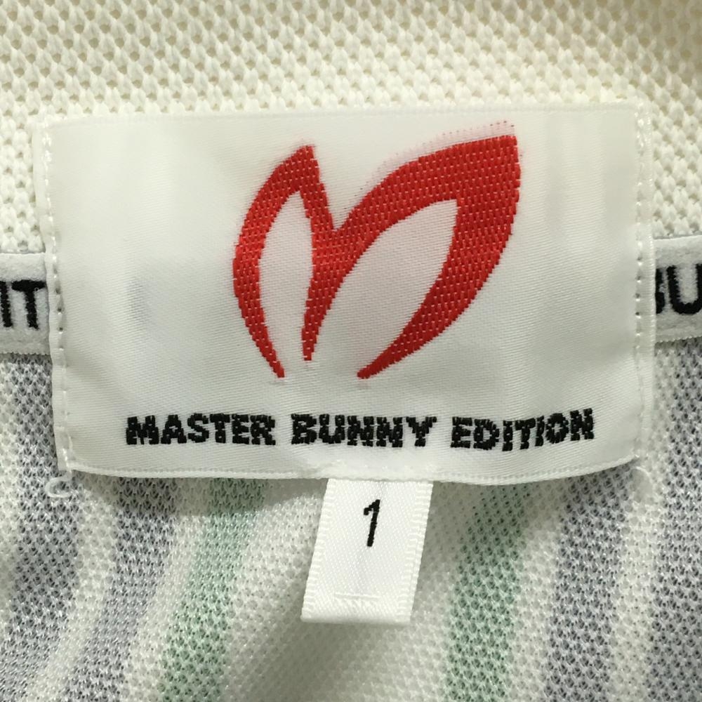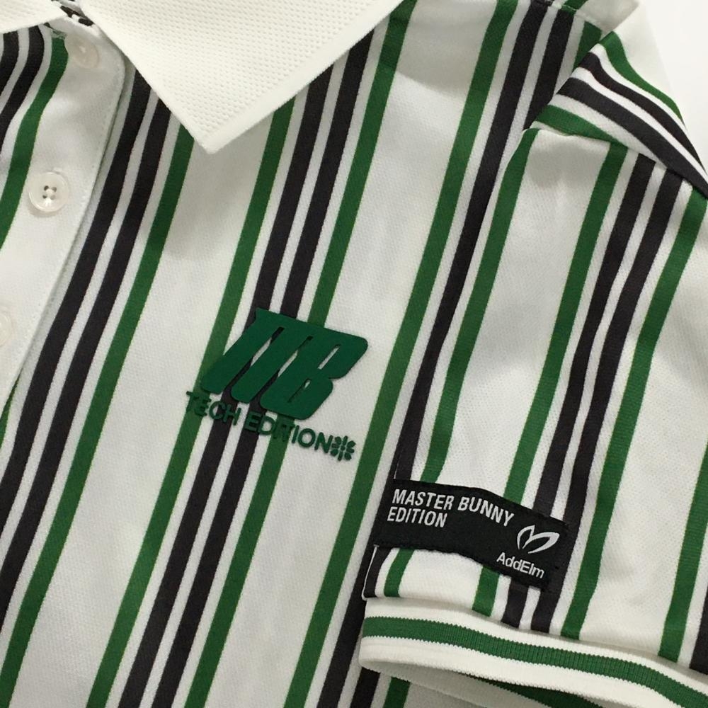 【美品】マスターバニー 半袖ポロシャツ 白×グリーン×黒 ストライプ レディース 1(M) ゴルフウェア 2025年モデル MASTER BUNNY EDITION