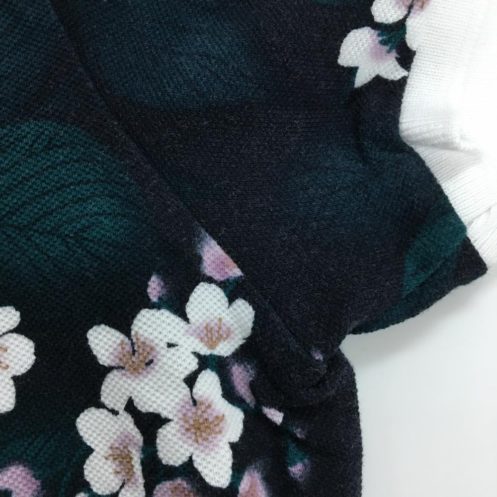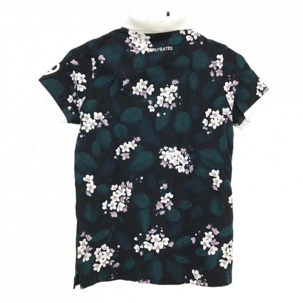 【美品】パーリーゲイツ 半袖ポロシャツ ネイビー×グリーン×ピンク 花柄 レディース 0(S) ゴルフウェア PEARLY GATES