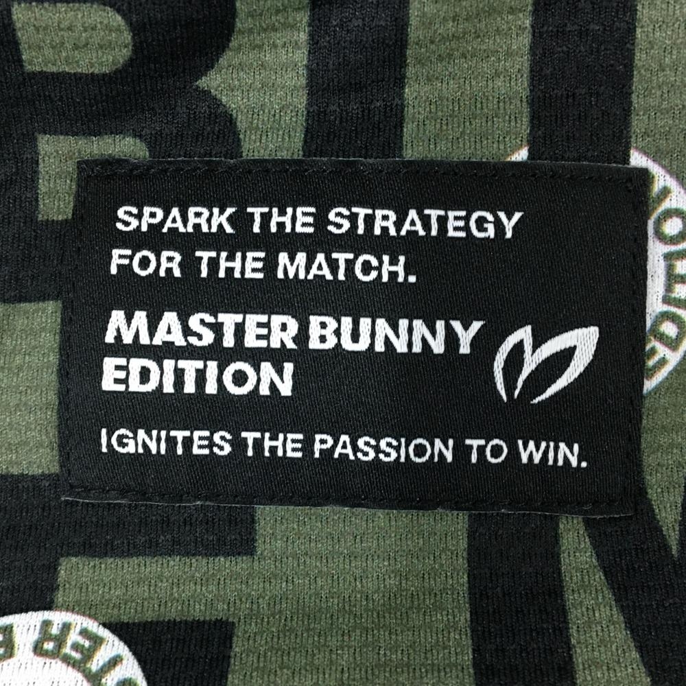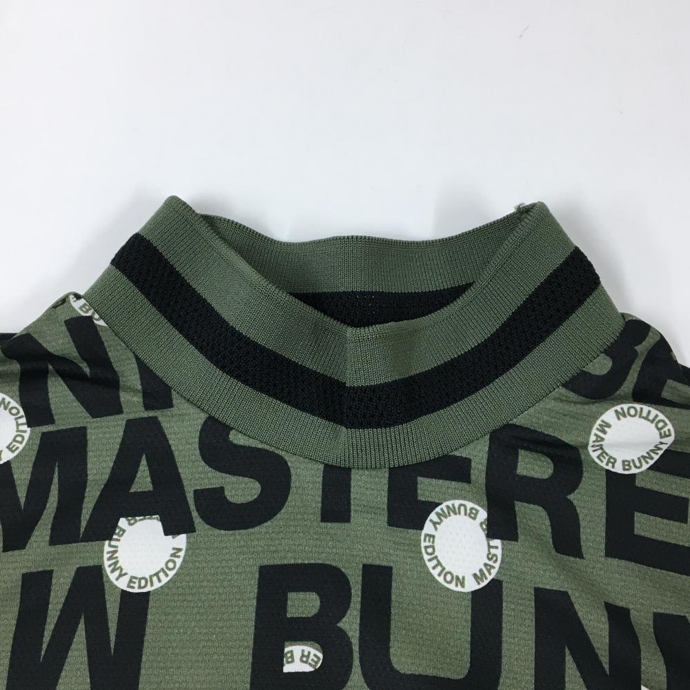 【超美品】マスターバニー 半袖ハイネックシャツ カーキ×黒 ロゴ総柄 レディース 2(L) ゴルフウェア 2024年モデル MASTER BUNNY EDITION
