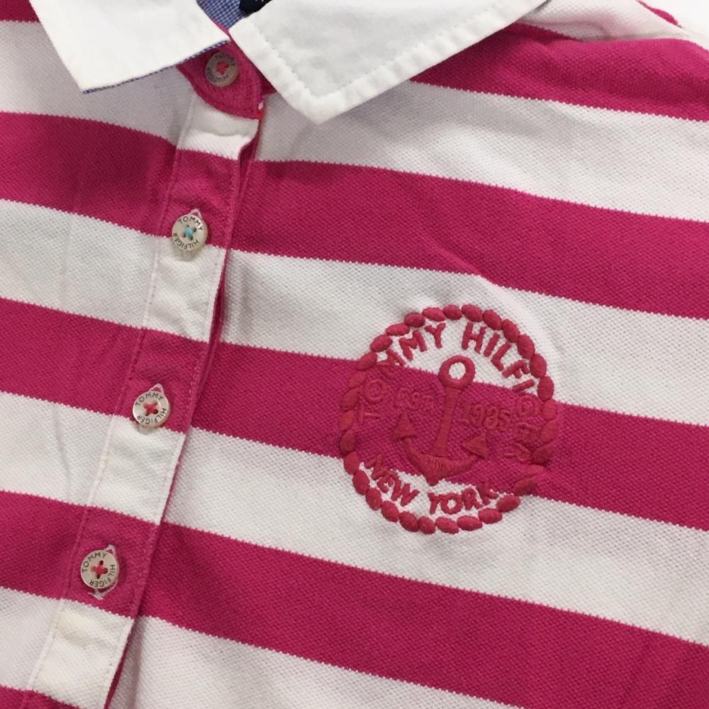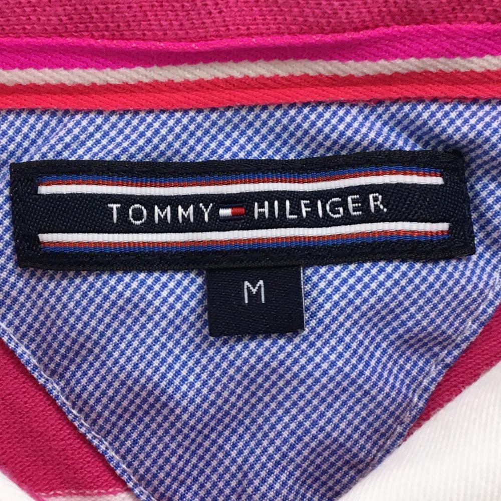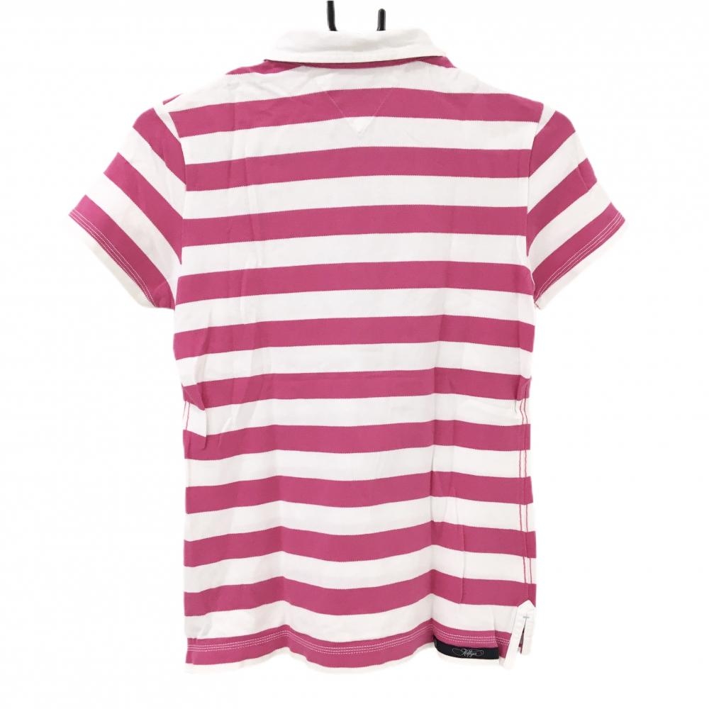 トミーヒルフィガーゴルフ 半袖ポロシャツ 白×ピンク ボーダー ロゴ刺しゅう レディース M ゴルフウェア Tommy Hilfiger Golf