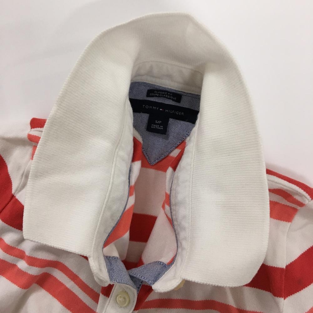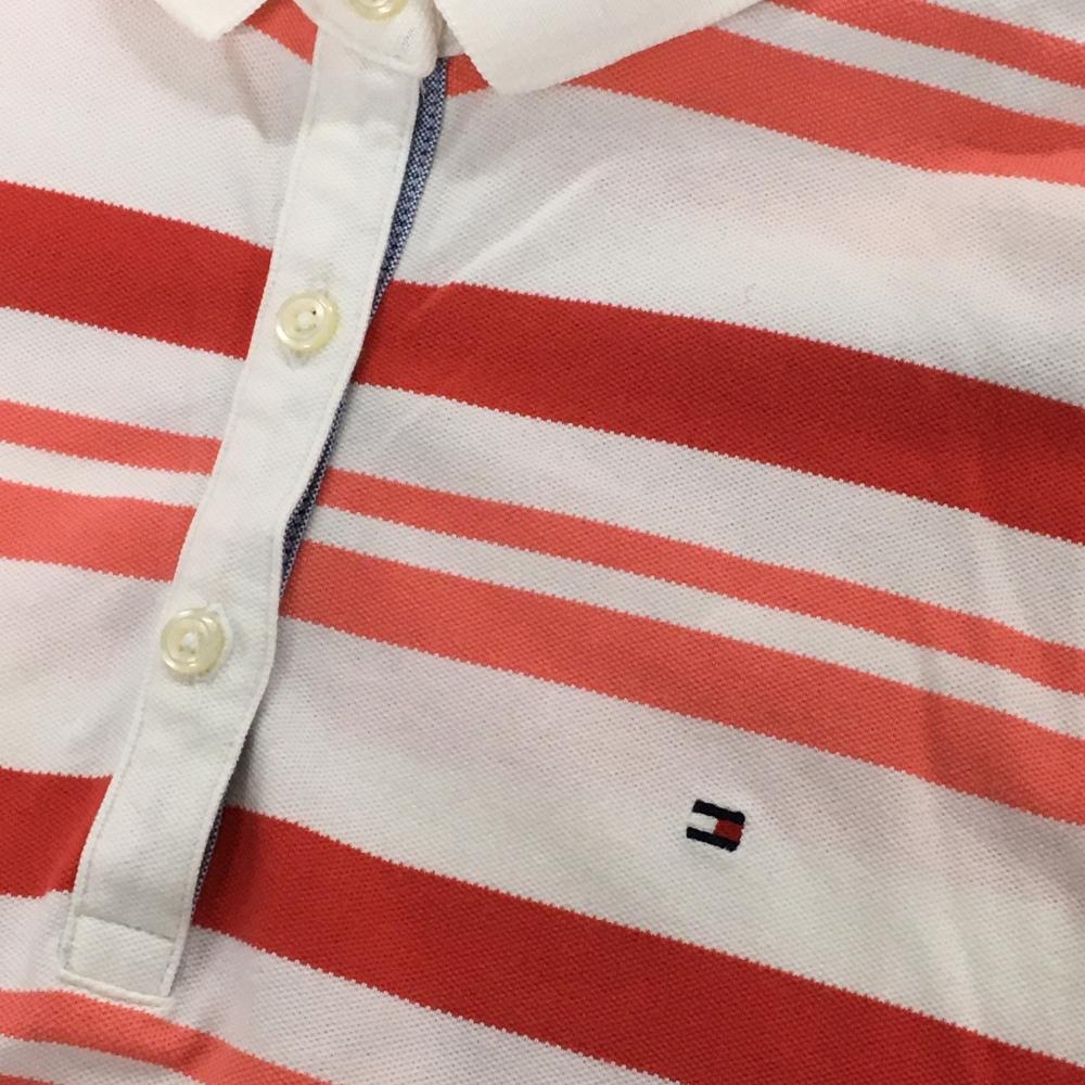 【美品】トミーヒルフィガーゴルフ 半袖ポロシャツ 白×レッド ボーダー ロゴ刺しゅう レディース S/P ゴルフウェア Tommy Hilfiger Golf