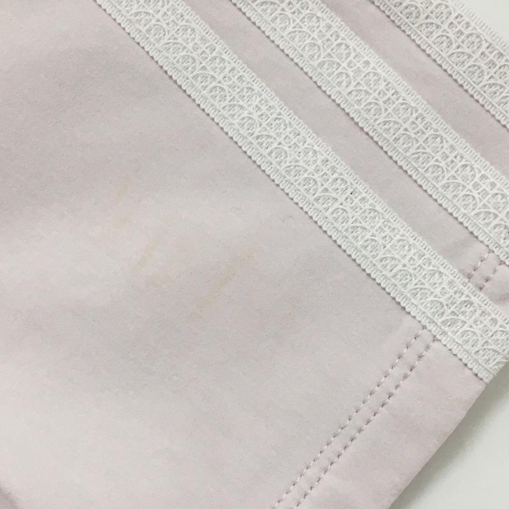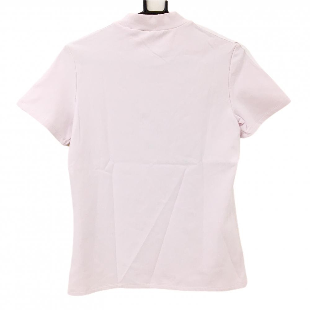 【美品】アディダス 半袖ハイネックシャツ ライトピンク×白 袖3ライン レディース L ゴルフウェア adidas