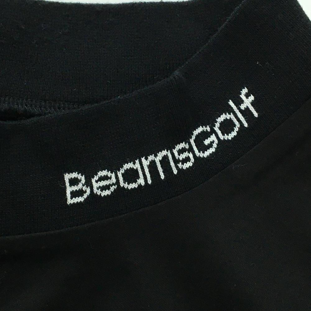 【美品】ビームスゴルフ 半袖ハイネックシャツ 黒×ライトブルー ロゴ 異素材切替 レディース L ゴルフウェア BEAMS GOLF