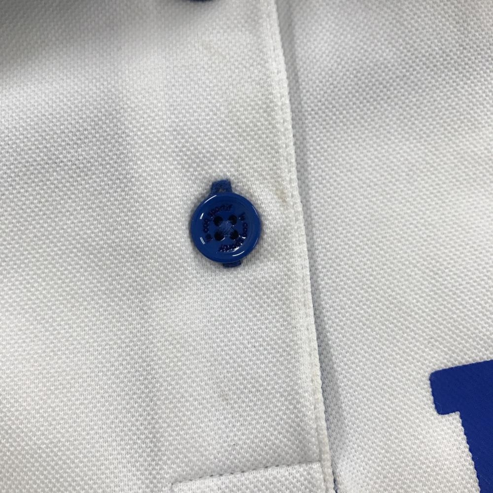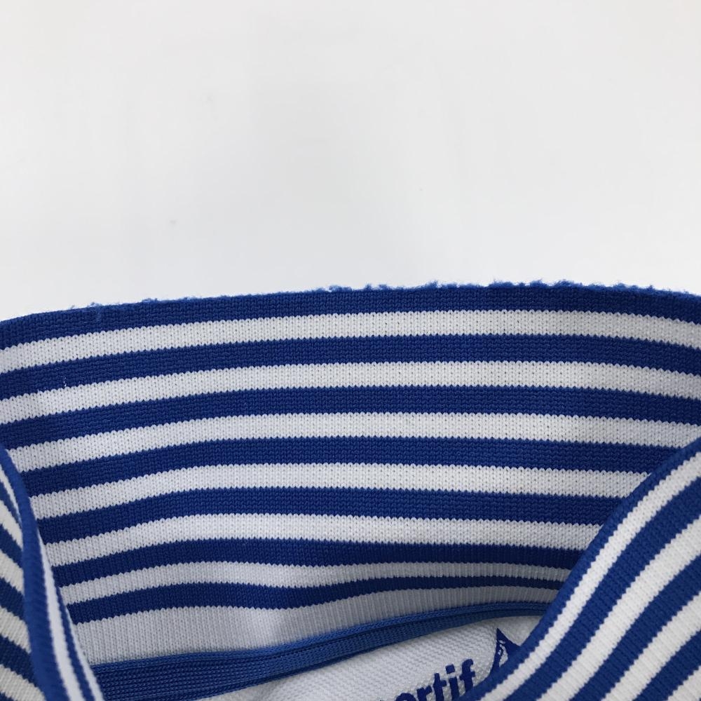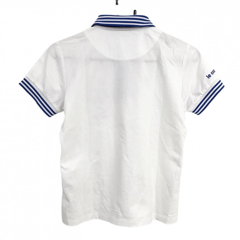 ルコックゴルフ 半袖ポロシャツ 白×ブルー 襟・袖口ボーダー ロゴ刺しゅう レディース M ゴルフウェア le coq sportif