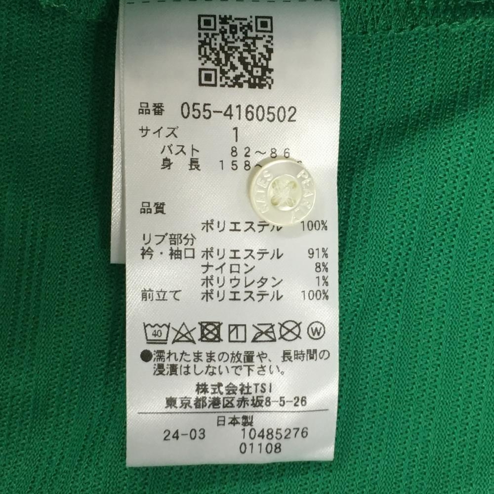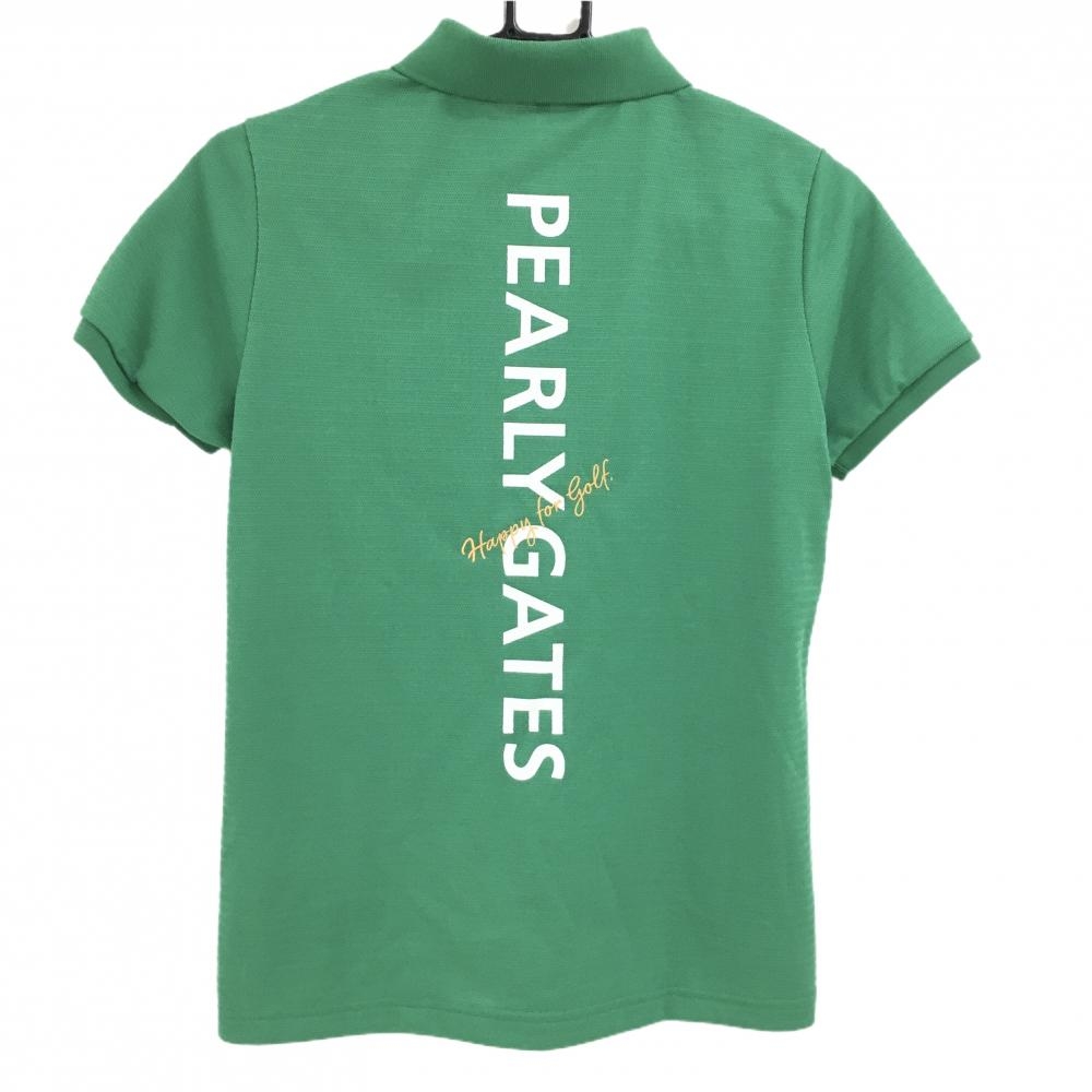 【超美品】パーリーゲイツ 半袖ポロシャツ グリーン 地模様 袖シリコンロゴ レディース 1(M) ゴルフウェア 2024年モデル PEARLY GATES