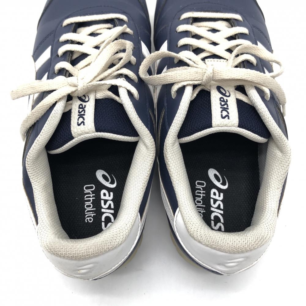 【美品】アシックス ゴルフシューズ ネイビー×白 113A054 スパイクレス メンズ 25.5 ゴルフウェア asics