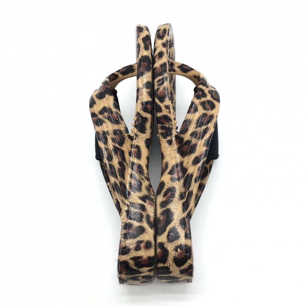 【美品】ムータマリン ビーチサンダル ベージュ×ブラウン レオパード 収納袋付き レディース M(約24.5) ゴルフウェア muta