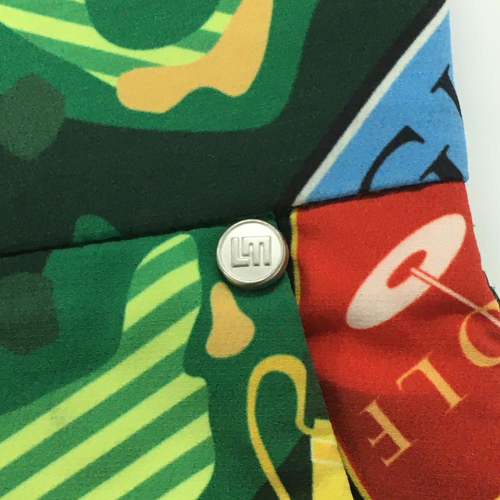 【美品】ラウドマウス ハーフパンツ グリーン×レッド×マルチカラー 総柄 キャディバッグ ゴルフティー メンズ M ゴルフウェア LOUDMOUTH