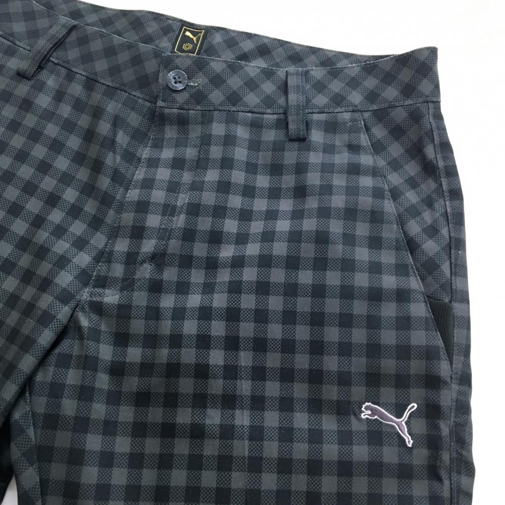 プーマ ハーフパンツ グレー×黒 チェック ロゴ刺しゅう メンズ 76 ゴルフウェア PUMA