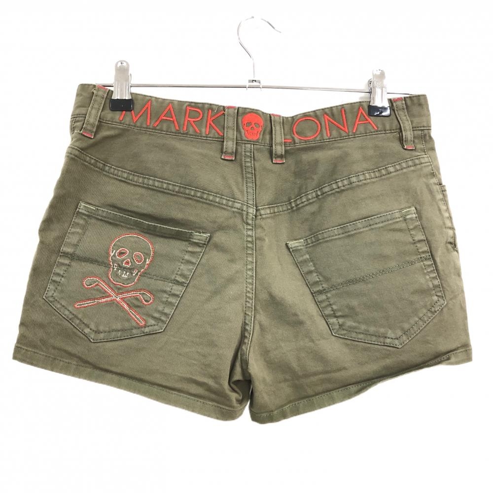 マークアンドロナ ショートパンツ カーキ スカル 後ろウエストロゴ レディース M ゴルフウェア MARK&LONA