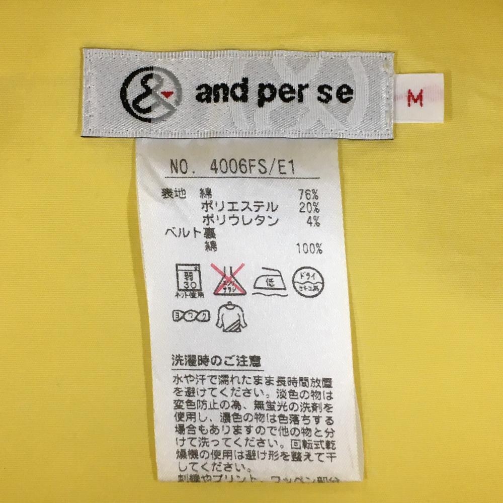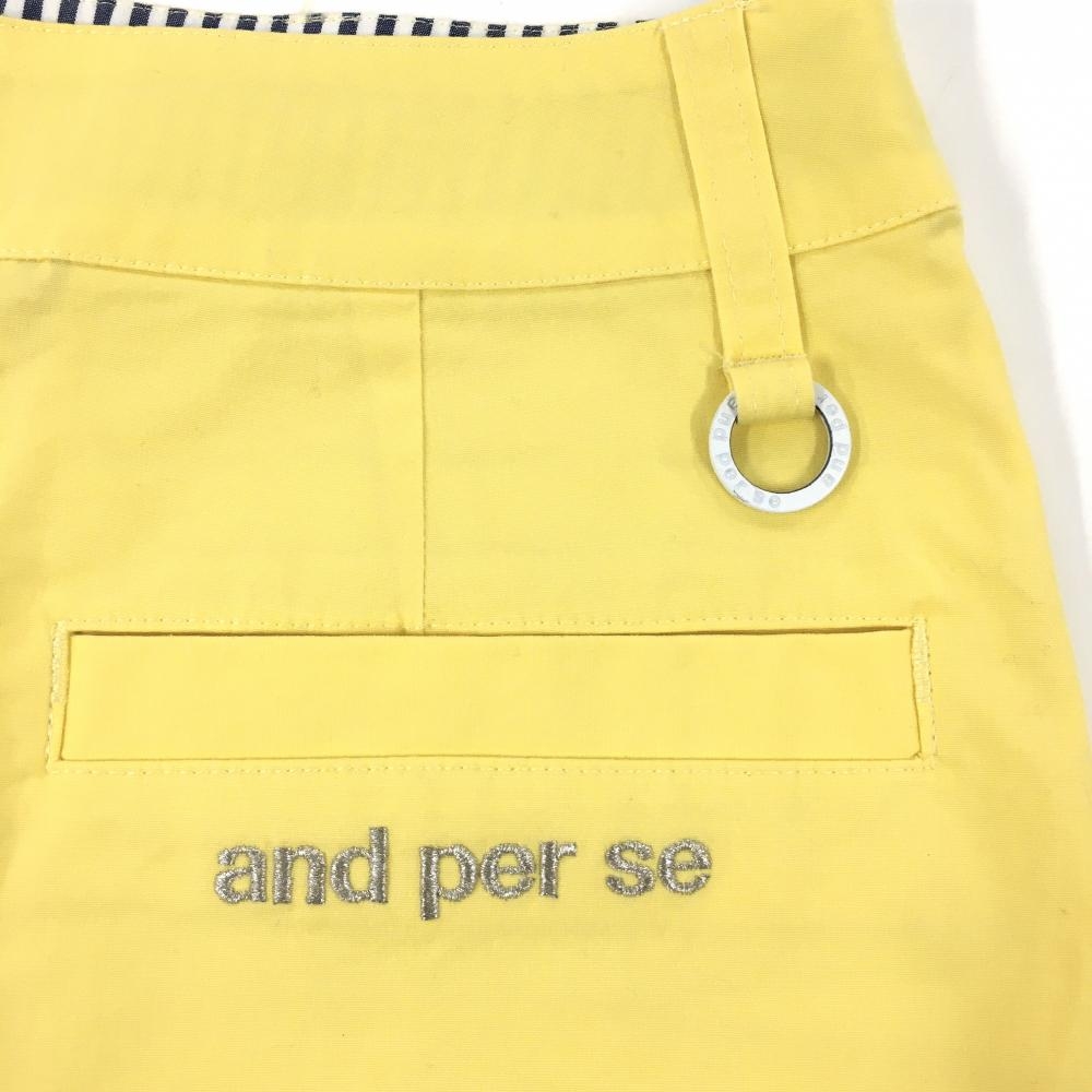 【超美品】アンパスィ スカート イエロー フロントボタン ロゴワッペン ラメ刺しゅう ストレッチ レディース M ゴルフウェア and per se