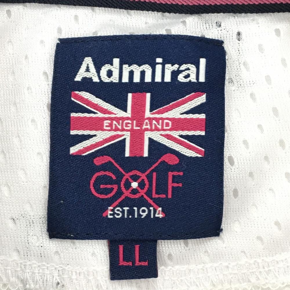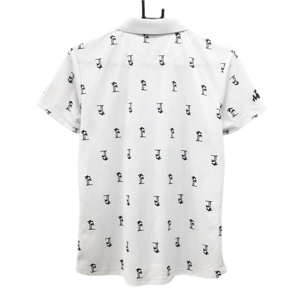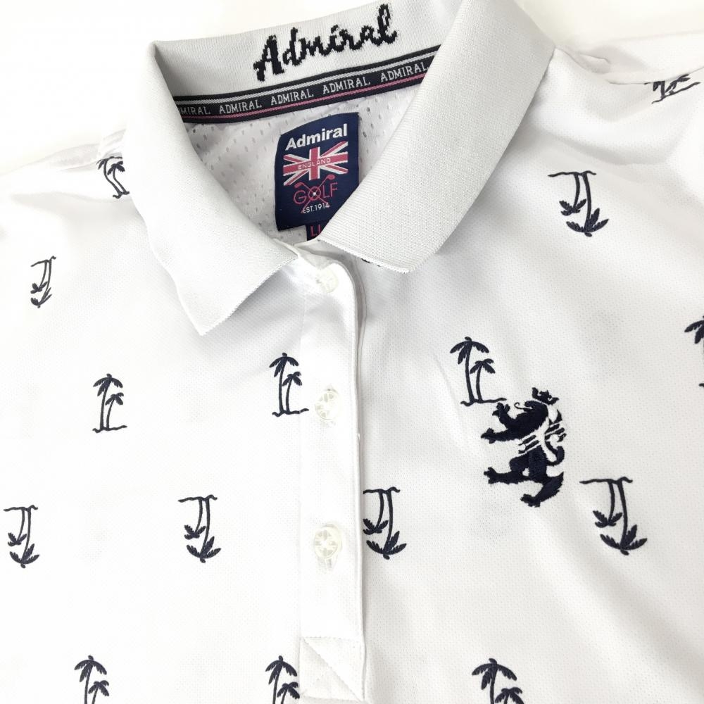 【超美品】アドミラル 半袖ポロシャツ 白×ダークネイビー ヤシの木総柄 ロゴ刺しゅう レディース LL ゴルフウェア Admiral