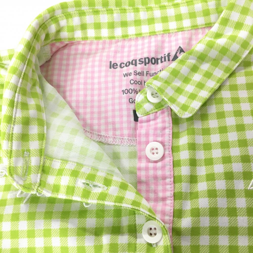 【超美品】ルコックゴルフ 半袖ポロシャツ イエローグリーン×白 ギンガムチェック レディース M ゴルフウェア le coq sportif
