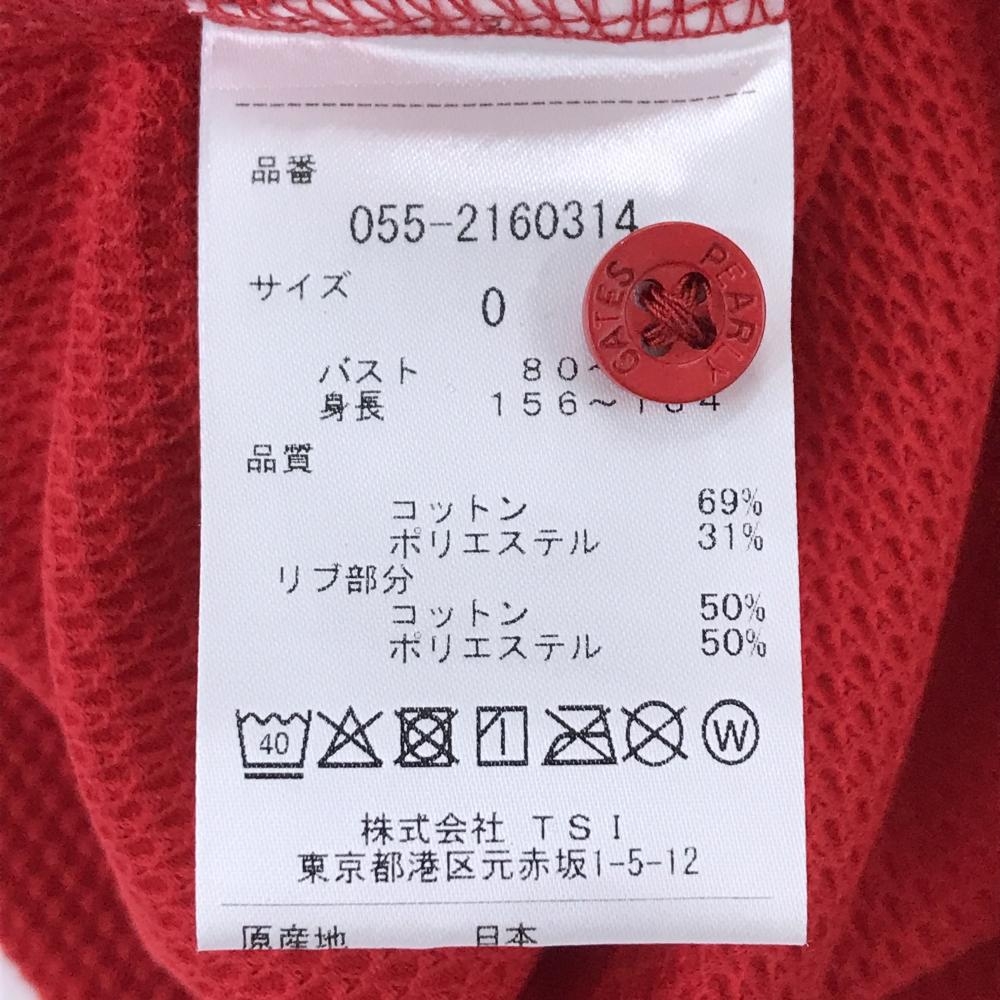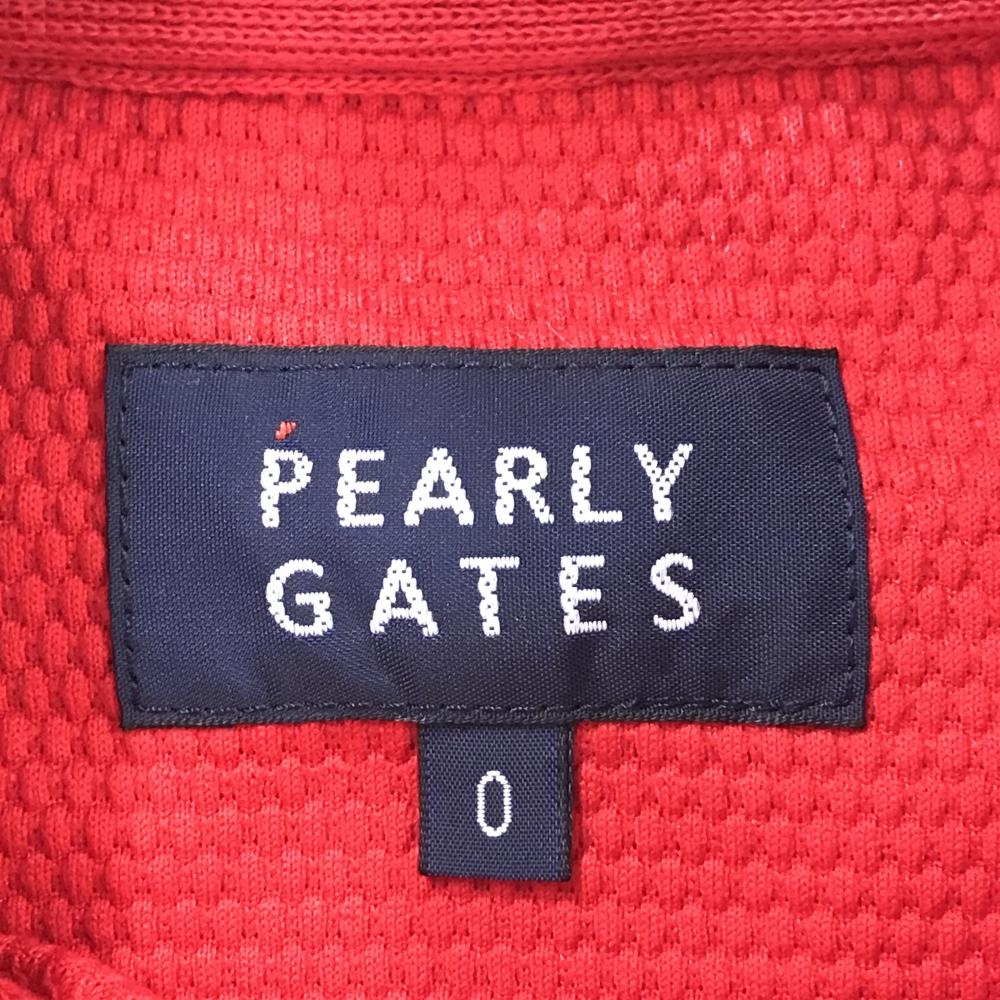 【美品】パーリーゲイツ 半袖ポロシャツ レッド×黒 ビッグロゴ 織生地 レディース 0(S) ゴルフウェア PEARLY GATES