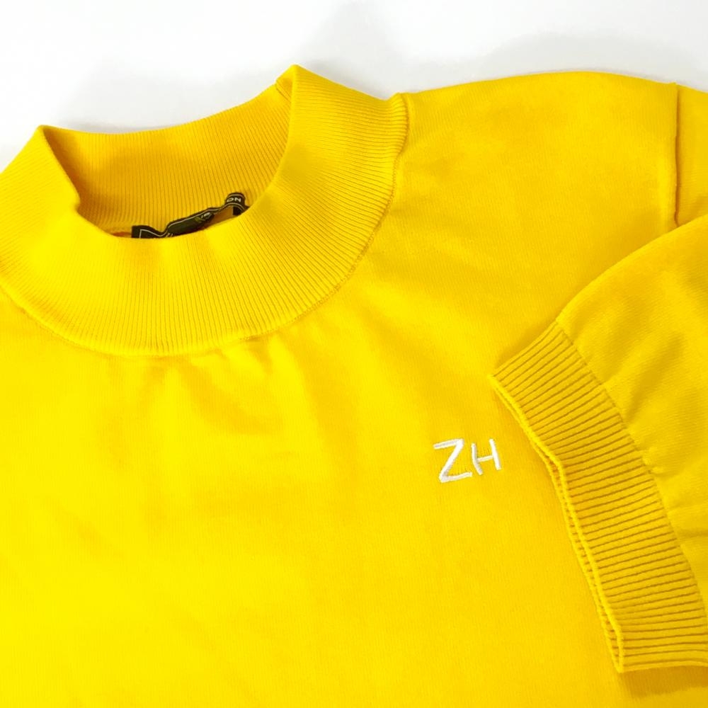 【美品】ゼロハリバートン 半袖ハイネックセーター イエロー×白 胸ロゴ レディース S ゴルフウェア 2023年モデル ZERO HALLIBURTON