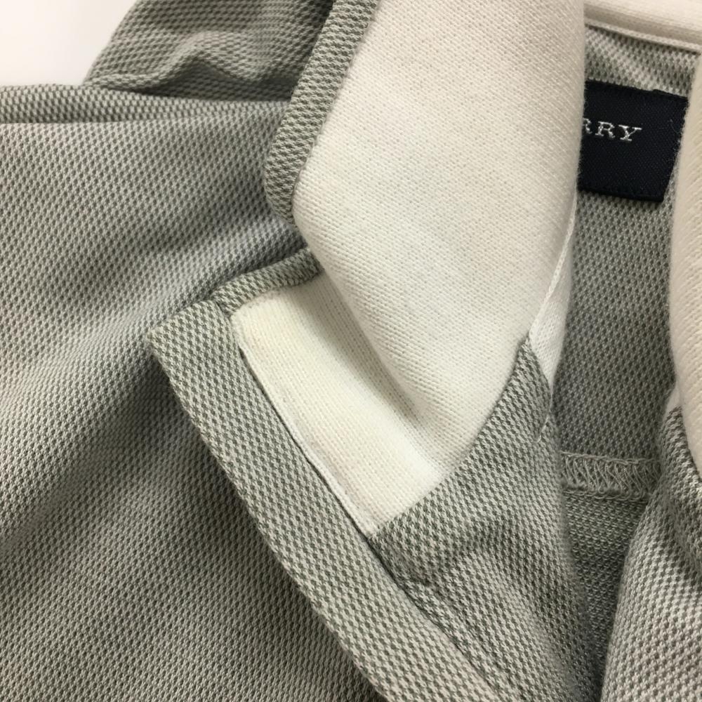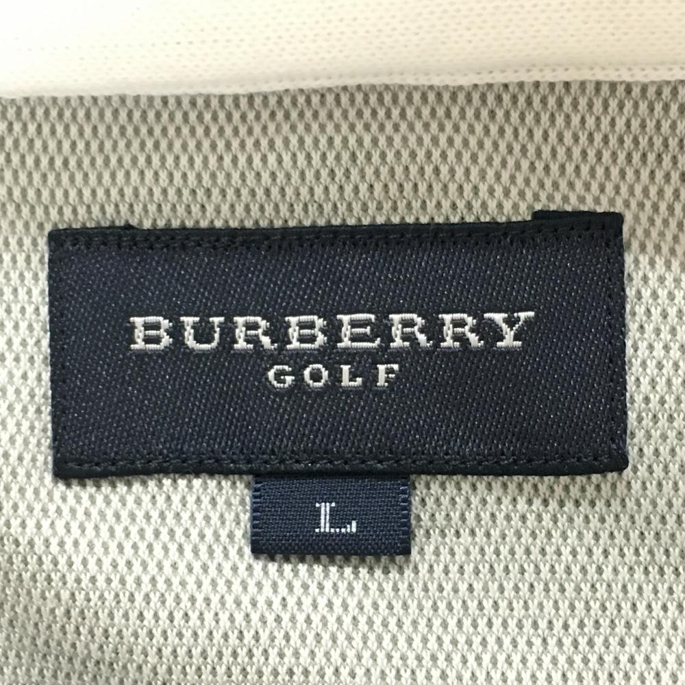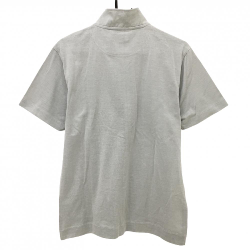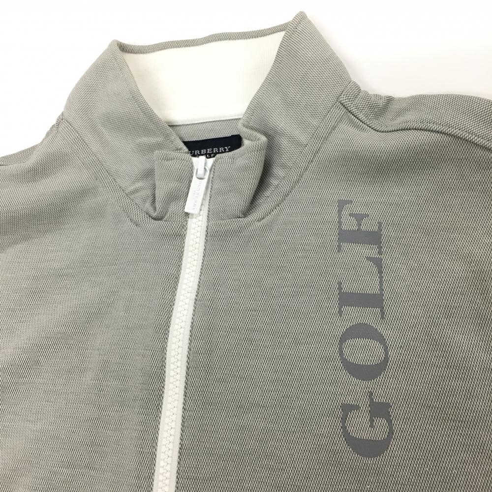 バーバリーゴルフ 半袖ハイネックシャツ ライトグレー系×白 ハーフジップ ビッグロゴ メンズ L ゴルフウェア BURBERRY GOLF