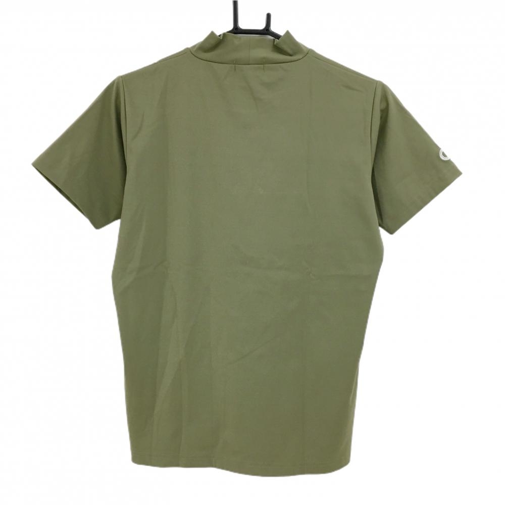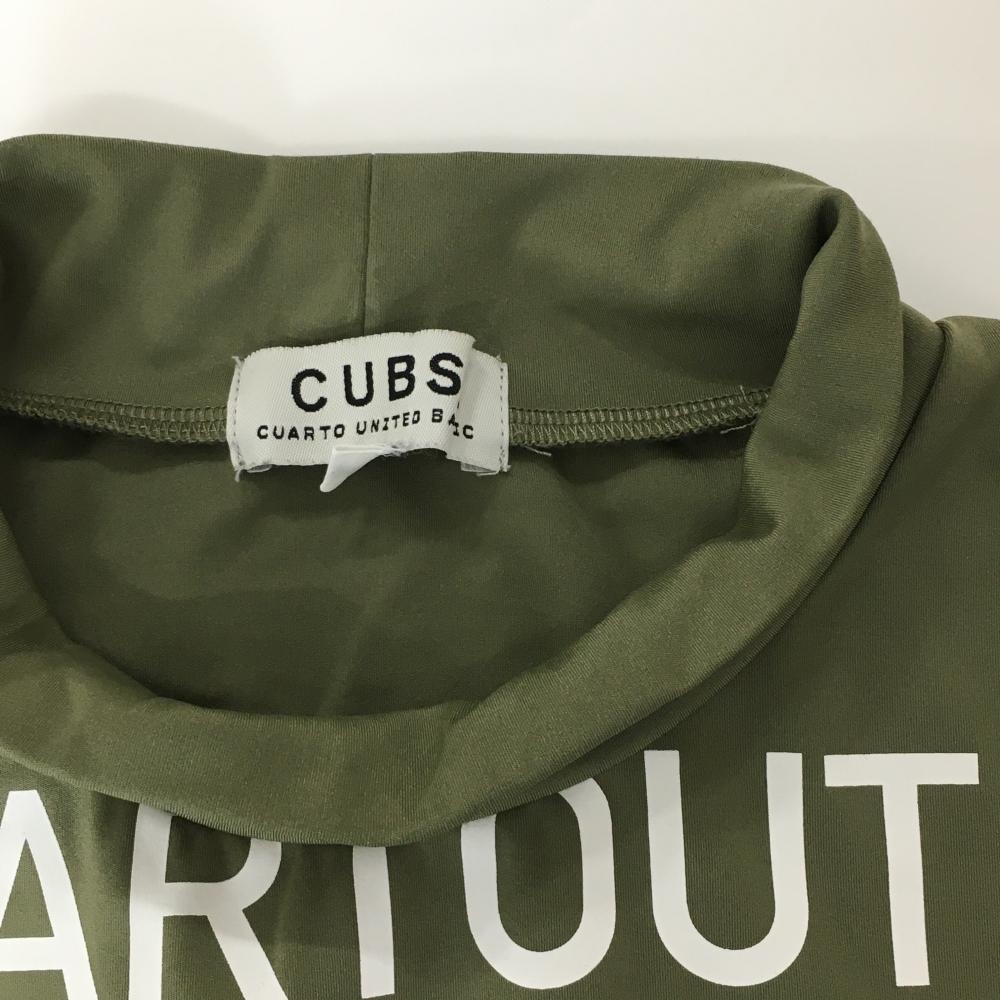 【美品】クアルトユナイテッドベーシック 半袖ハイネックシャツ カーキ×白 フロントロゴ レディース L ゴルフウェア CUARTO UNITED