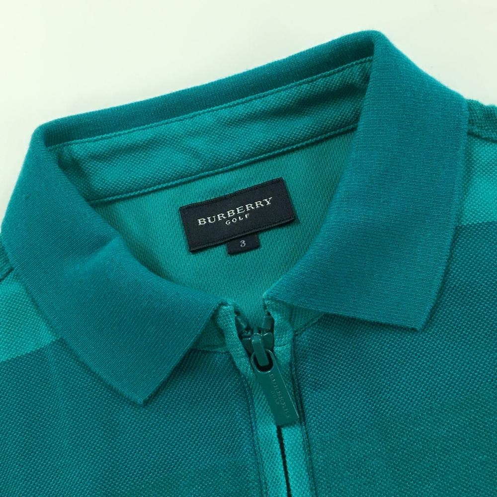 バーバリーゴルフ 半袖ポロシャツ ブルーグリーン系 太ボーダー ハーフジップ メンズ 3(L) ゴルフウェア BURBERRY GOLF