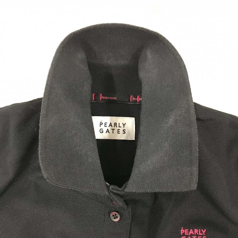 パーリーゲイツ 半袖ポロシャツ 黒 ロゴピンク フライングラビット レディース 0(S) ゴルフウェア 2023年モデル PEARLY GATES