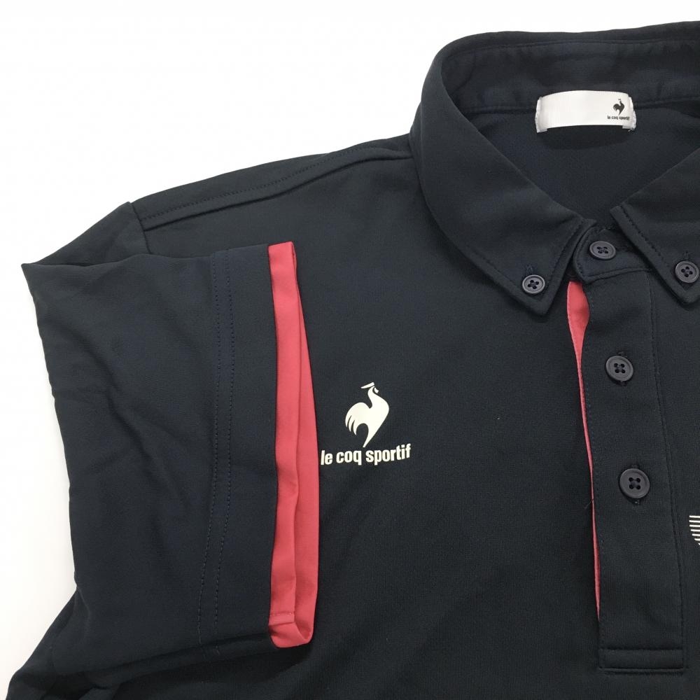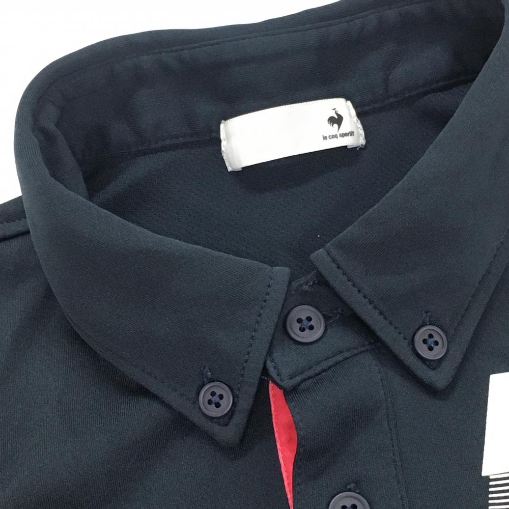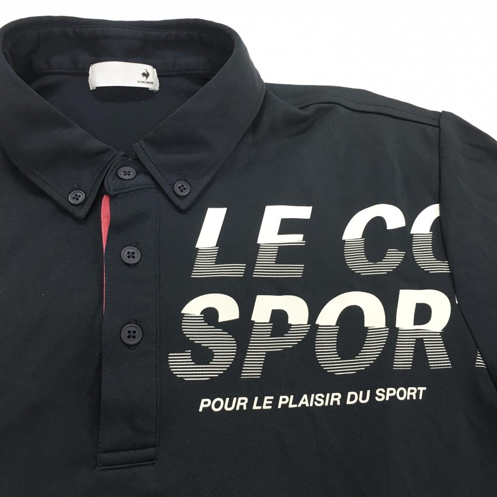 ルコックゴルフ 半袖ポロシャツ ダークネイビー×白 ボタンダウン ロゴプリント メンズ L ゴルフウェア le coq sportif