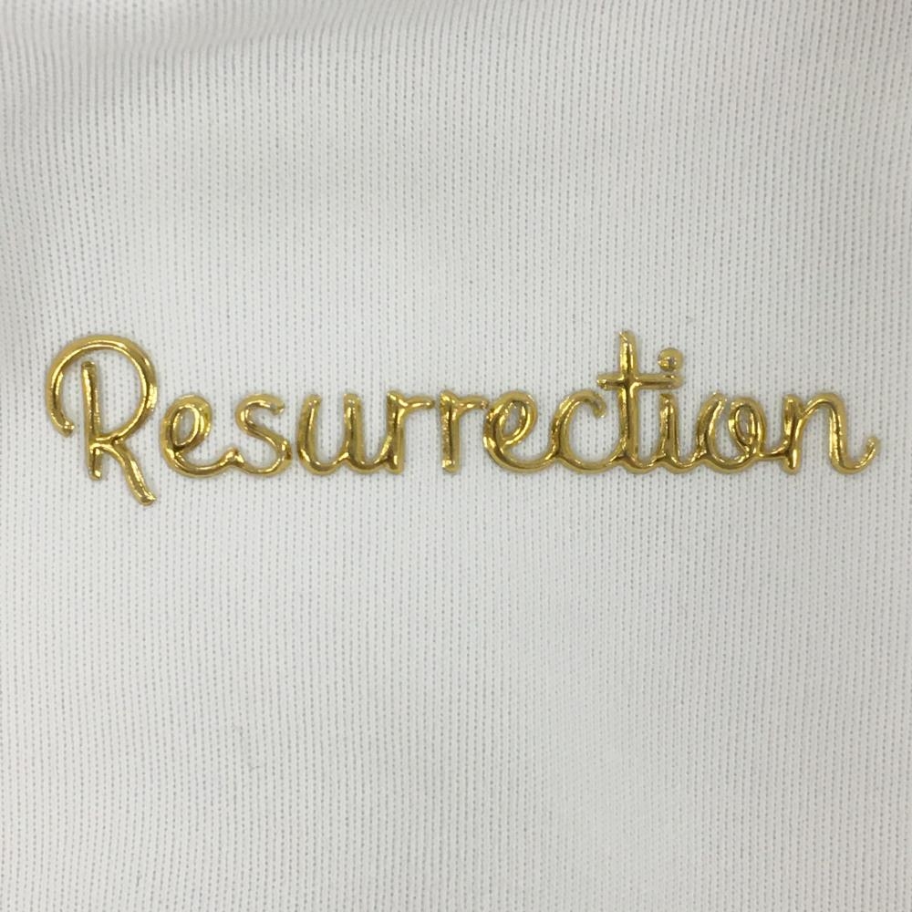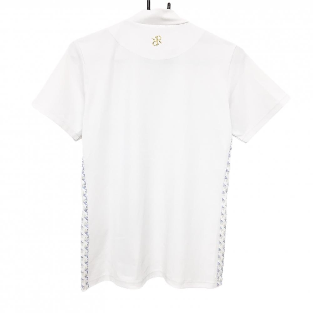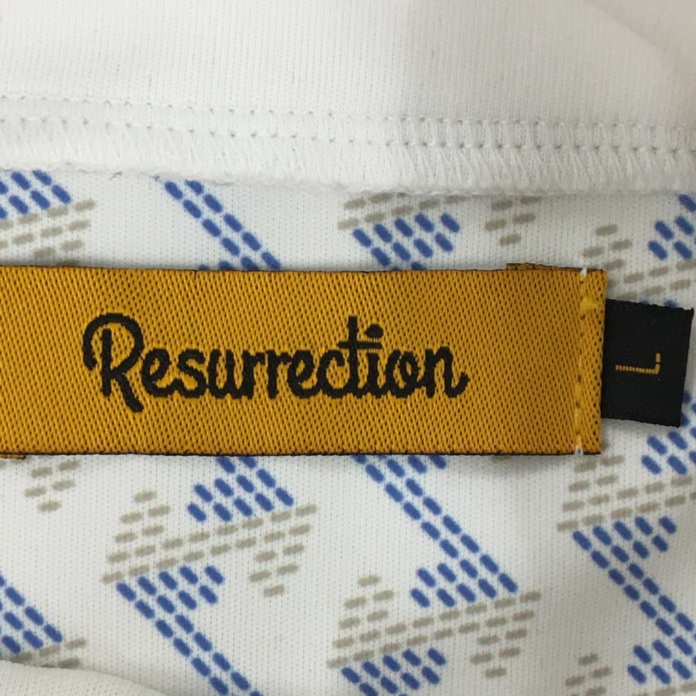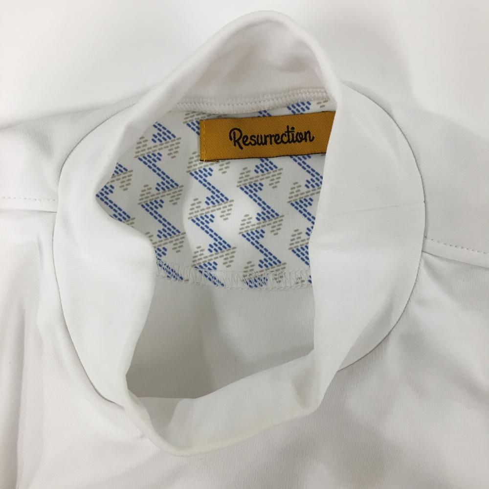 レザレクション 半袖ハイネックシャツ 白×ブルー サイド切替総柄 レディース L ゴルフウェア Resurrection