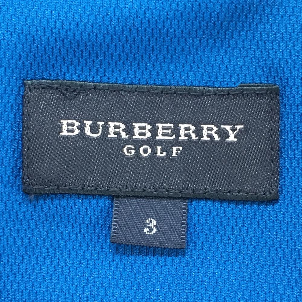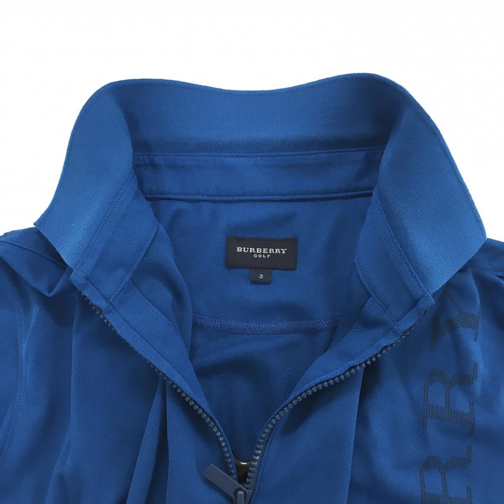 【美品】バーバリーゴルフ 半袖ポロシャツ ブルー系 ハーフジップ ビッグロゴ メンズ 3(L) ゴルフウェア BURBERRY GOLF