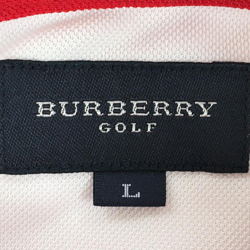 バーバリーゴルフ 半袖ポロシャツ 白×黒×レッド ロゴ刺しゅう メンズ L ゴルフウェア BURBERRY GOLF