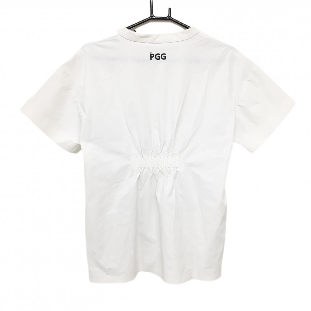【美品】PGGパーリーゲイツ 半袖ブルゾン 白 ナイロン混 ストレッチ バックロゴ・シャーリング レディース 1(M) ゴルフウェア PEARLY GATES