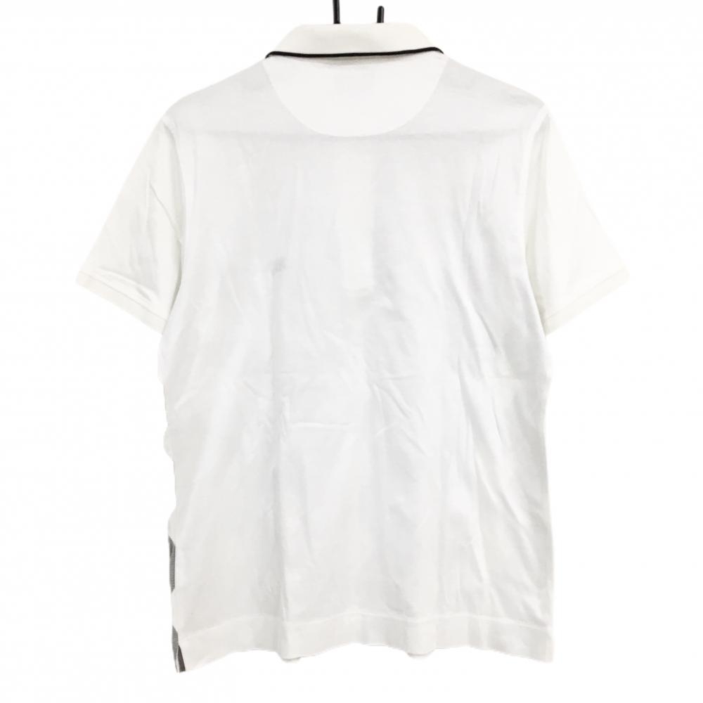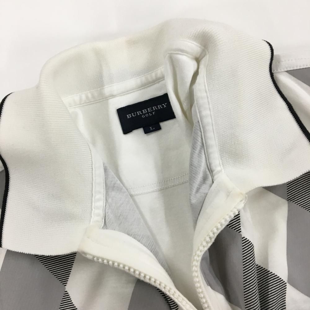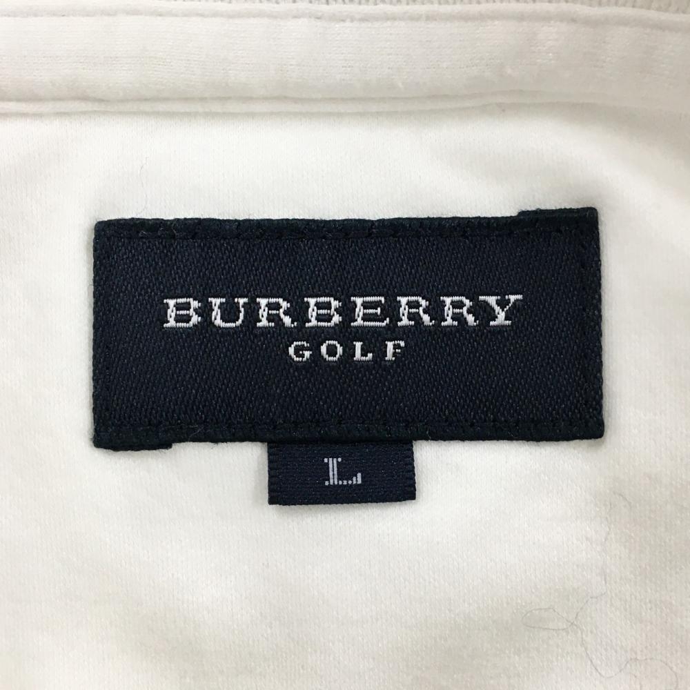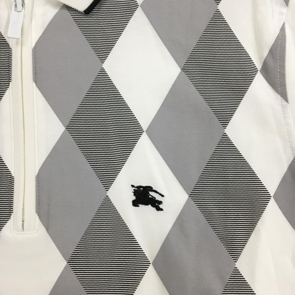 バーバリーゴルフ 半袖ポロシャツ 白×グレー×黒 前面ダイヤ柄 ハーフジップ メンズ L ゴルフウェア BURBERRY GOLF