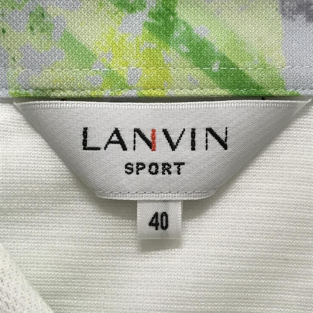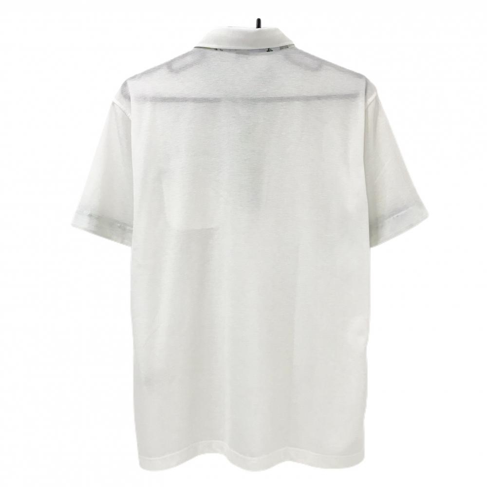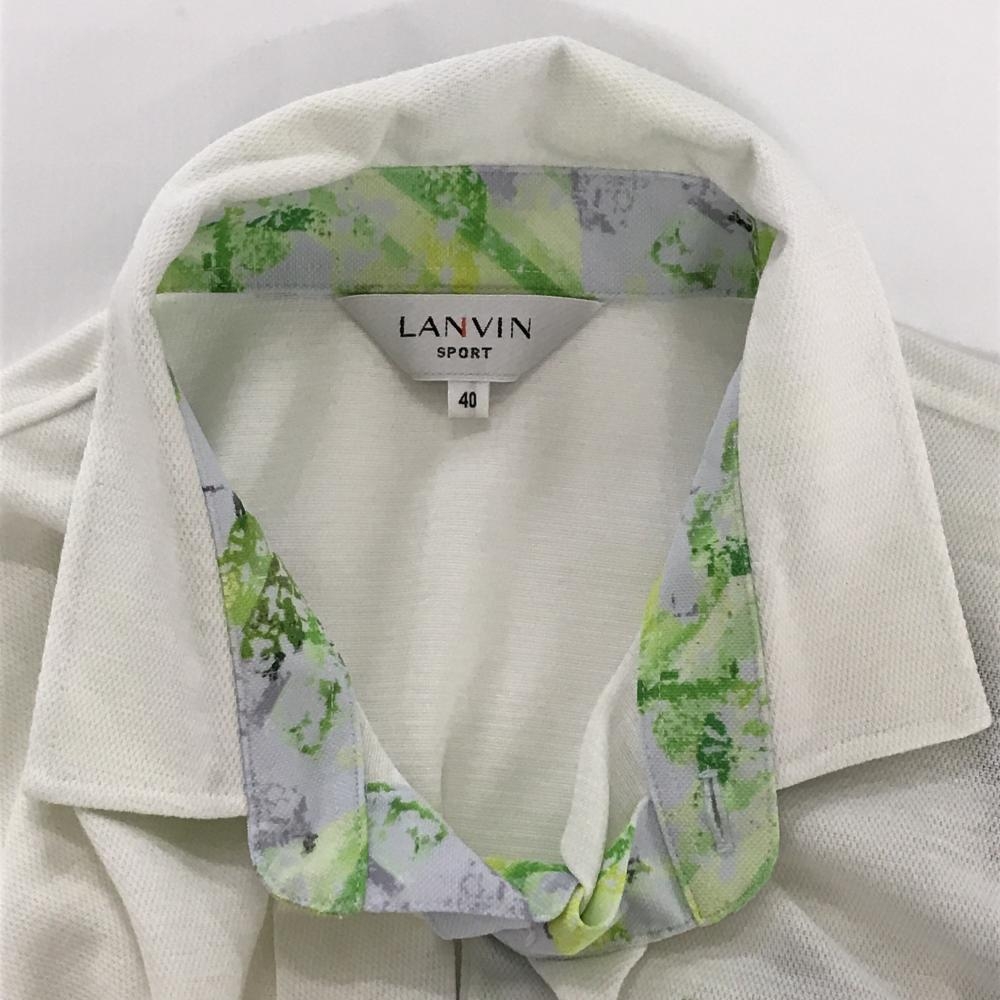 【美品】ランバンスポール 半袖ポロシャツ 白×ライトグリーン 胸ポケット口・襟裏柄胸ポケット付 メンズ 40(L) ゴルフウェア LANVIN SPORT