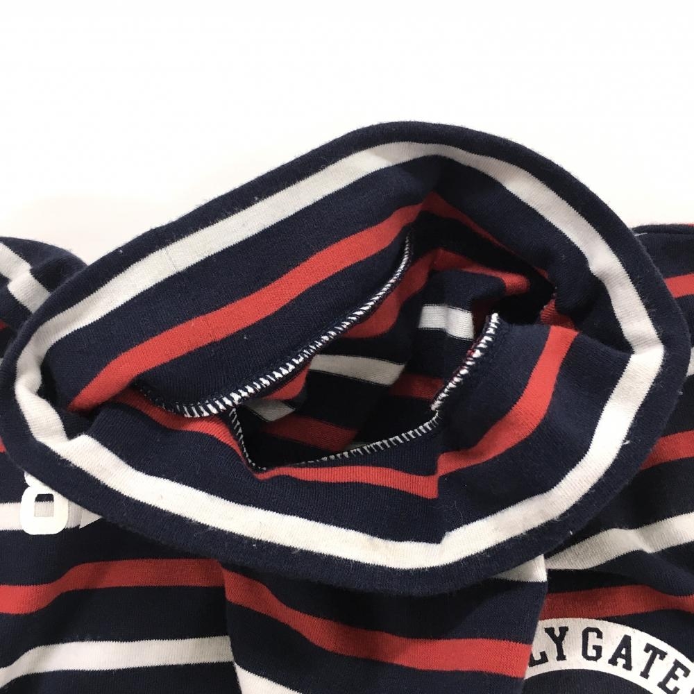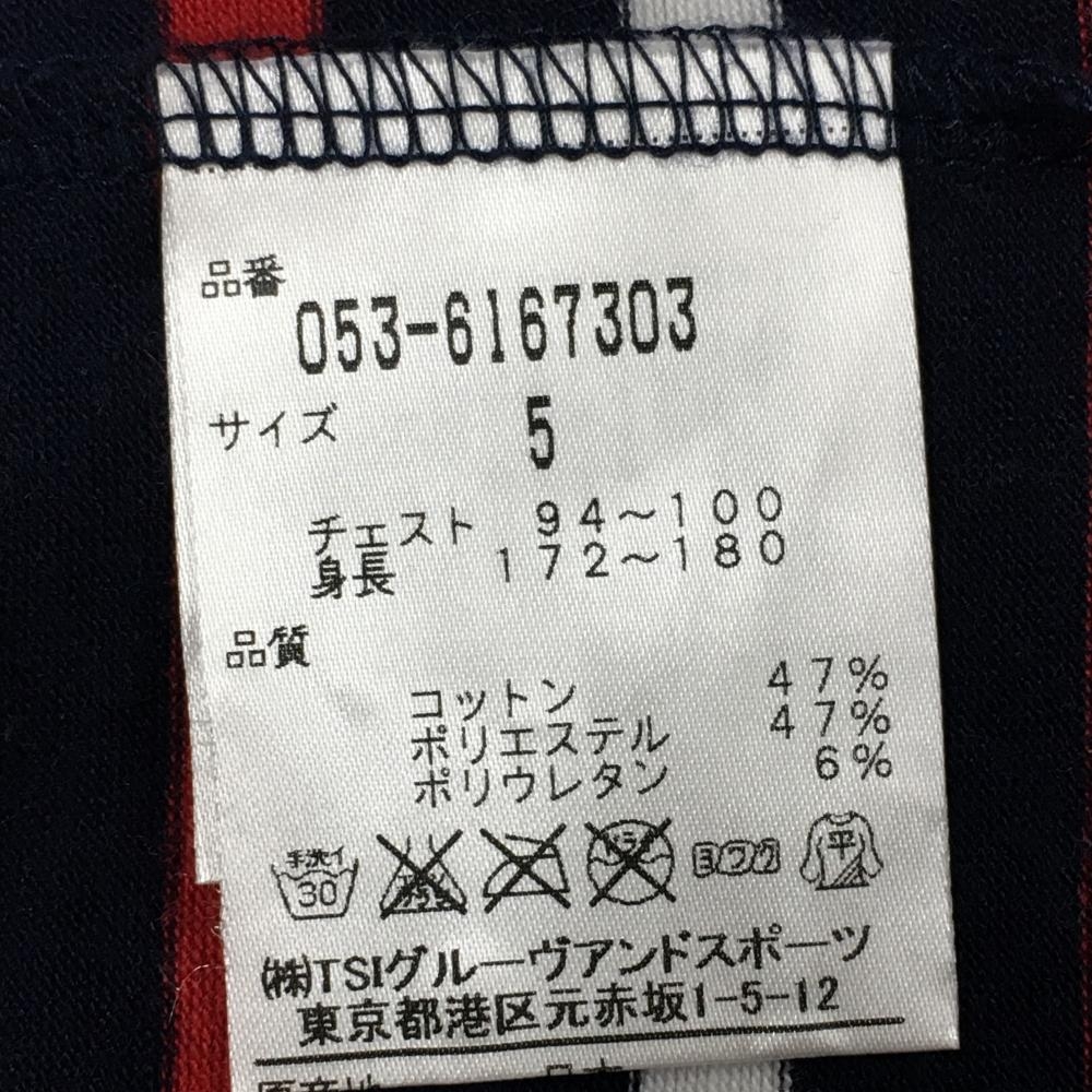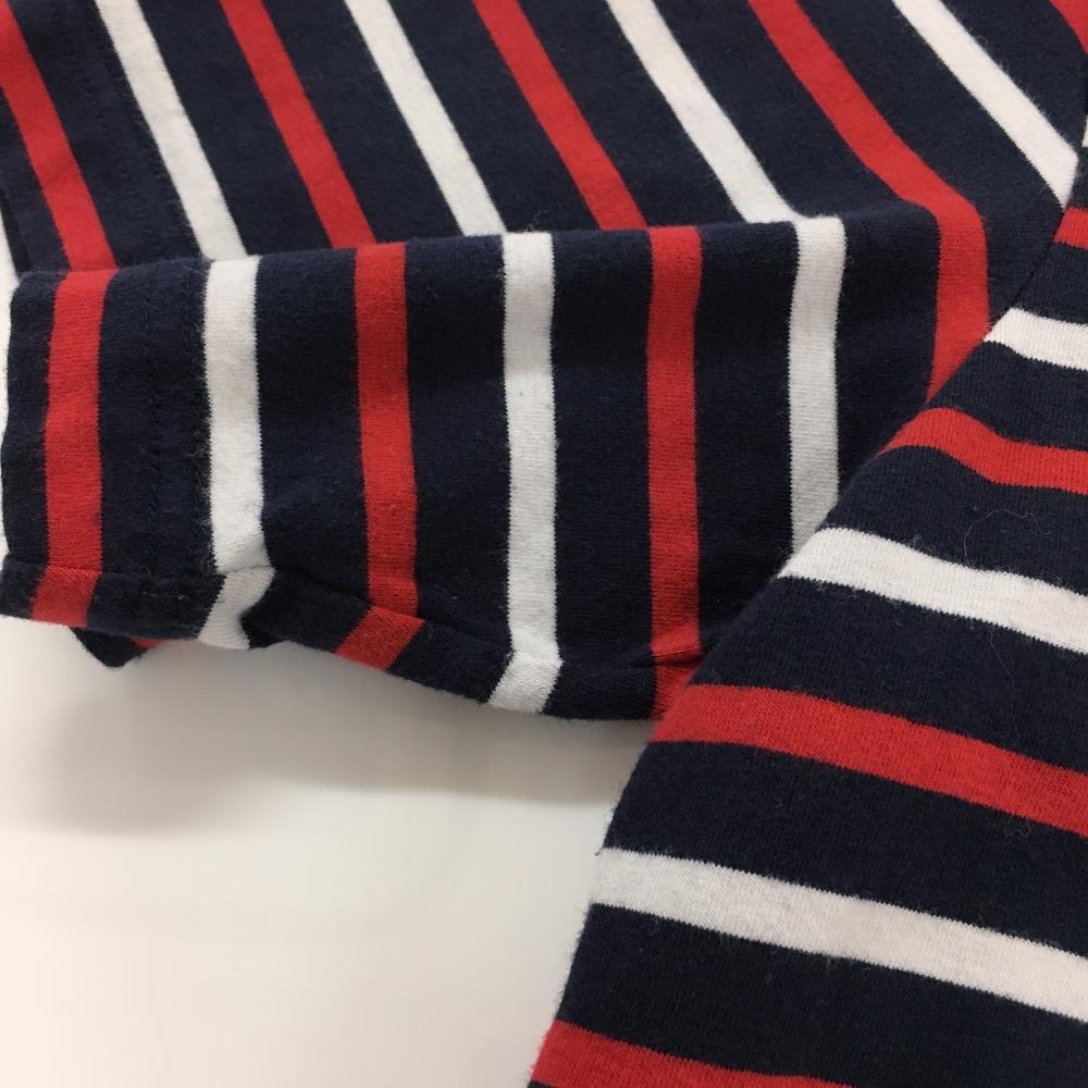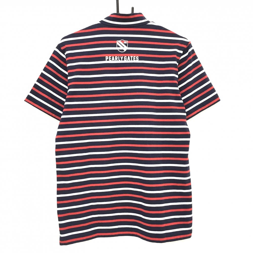 【美品】パーリーゲイツ 半袖ハイネックシャツ ダークネイビー×レッド×白 ボーダー メンズ 5(L) ゴルフウェア PEARLY GATES