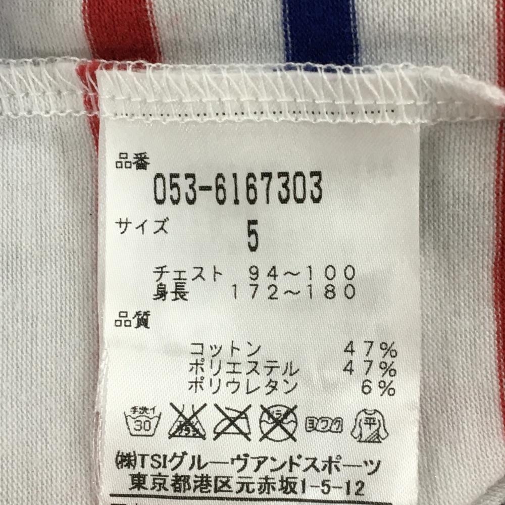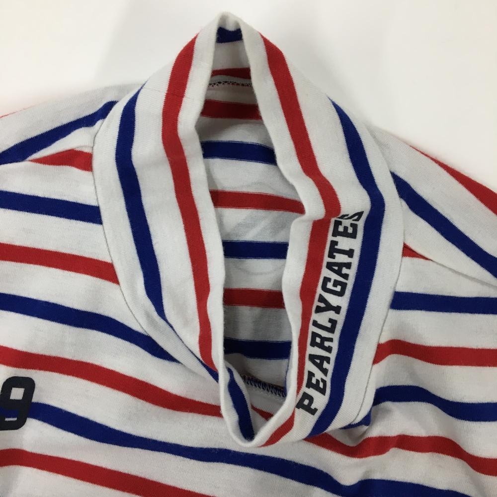 【美品】パーリーゲイツ 半袖ハイネックシャツ 白×レッド×ブルー ボーダー ネックロゴ メンズ 5(L) ゴルフウェア PEARLY GATES