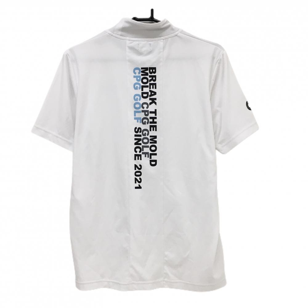 【超美品】CPG 半袖ハイネックシャツ 白 バックプリント ラバーロゴワッペン メンズ 2(M) ゴルフウェア 2023年モデル CPG
